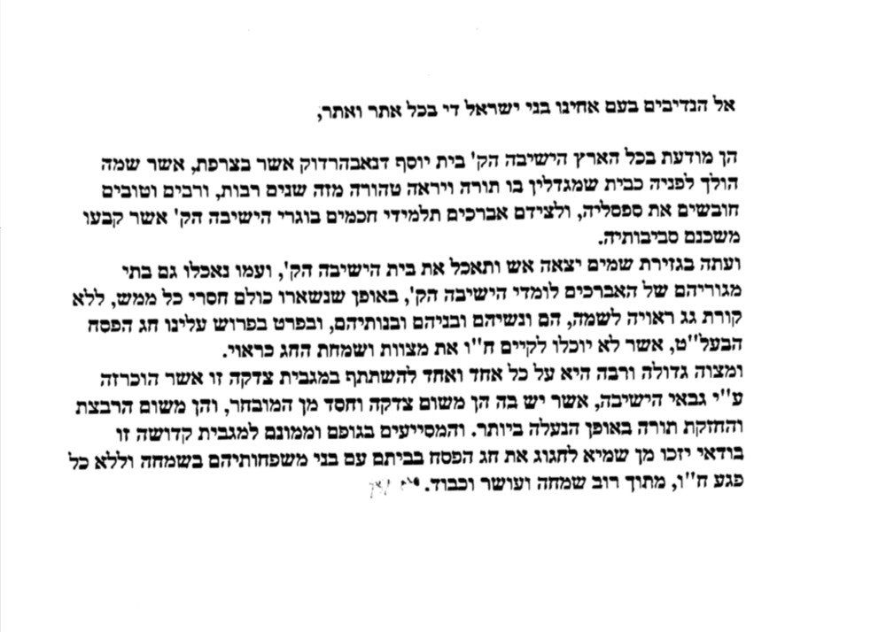 Donations to the campaign go to families living in poverty in Israel. The organization and its campaigns have received the public support of countless gedolim. Those who miss the opportunity to donate before this Shvi’i Shel Pesach will need to wait until next year’s event