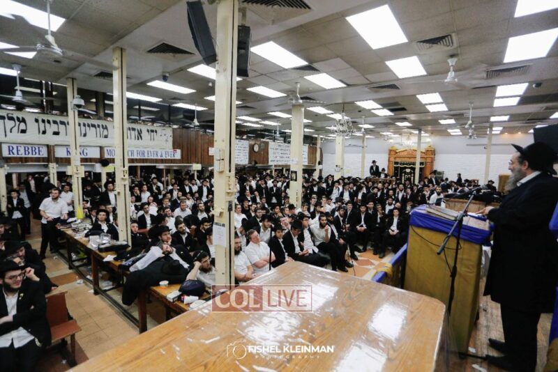Earlier today, thousands of Bochurim participated in the official “Welcome” gathering, an annual event organized by the spiritual department of Eshel – Hachnosas Orchim, the organization appointed by the Rebbe to care for the guests’ needs.