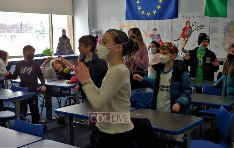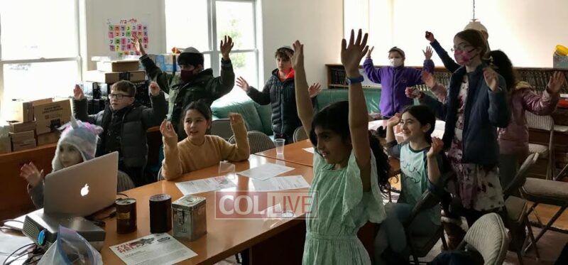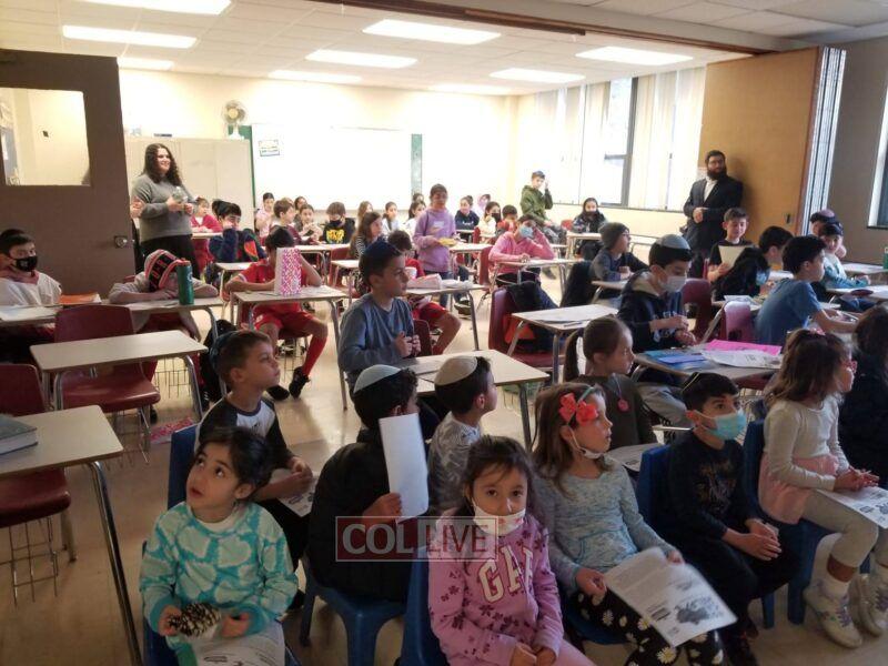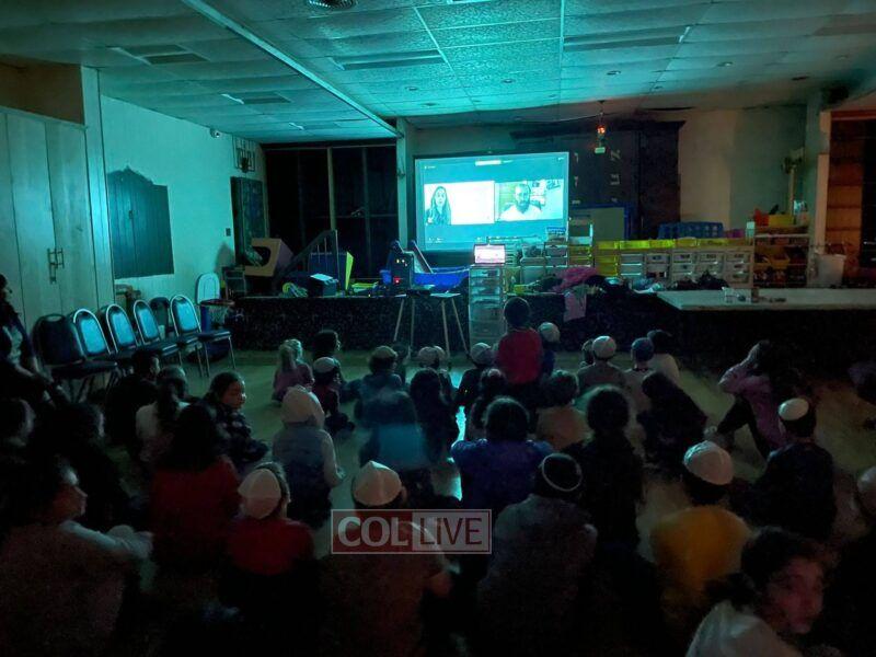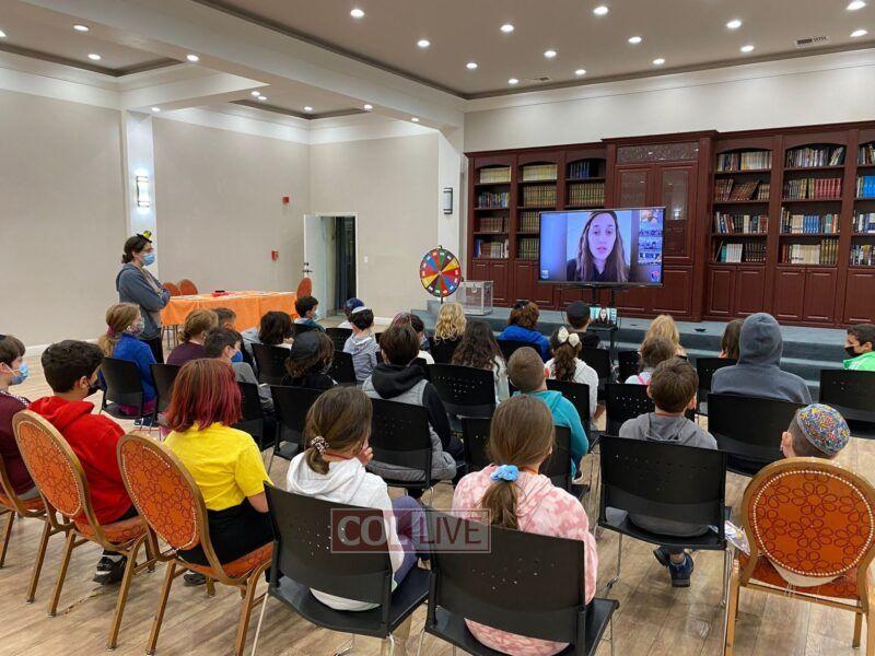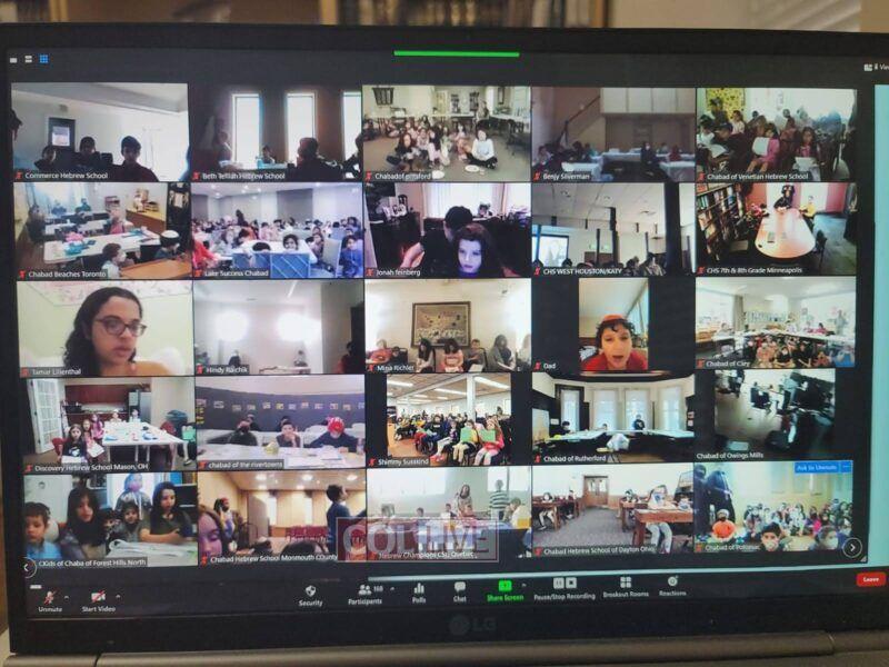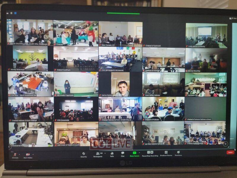 The fifteen-minute program encouraged children to say a kapitel Tehillim and give Tzedakah in the merit of Ukrainian Jewry. Each school gathered in front of a screen or projector, which allowed them to participate in the event live. They even answered in unison when the students at the Chabad Hebrew Schools in Lake Success, NY and Potomac, Maryland, led the rally in reciting “Torah” and “Shema Yisroel.”