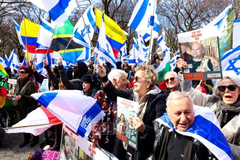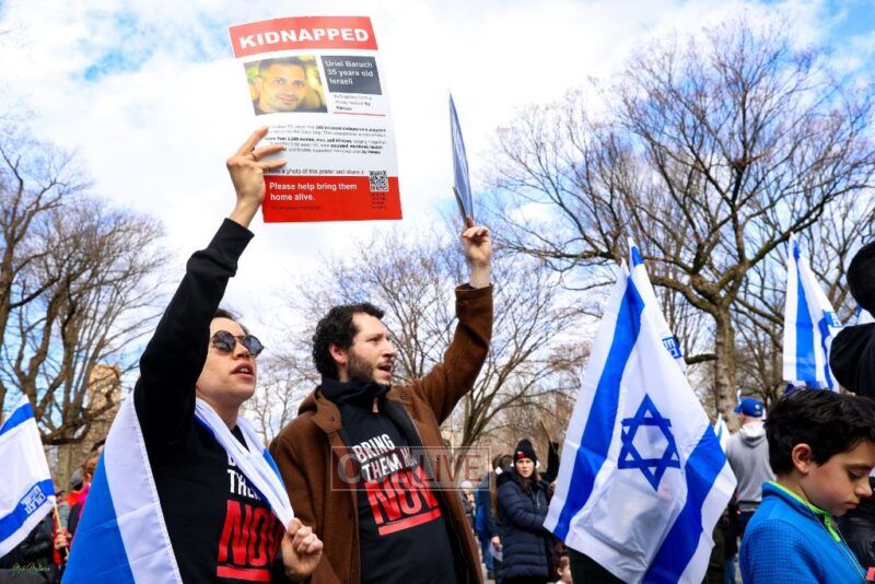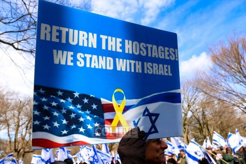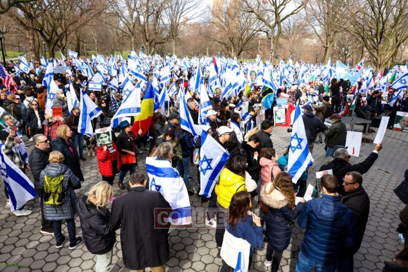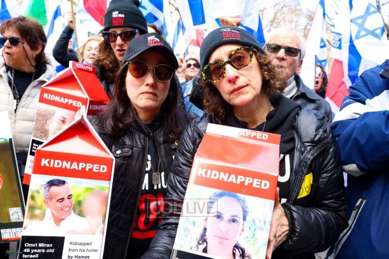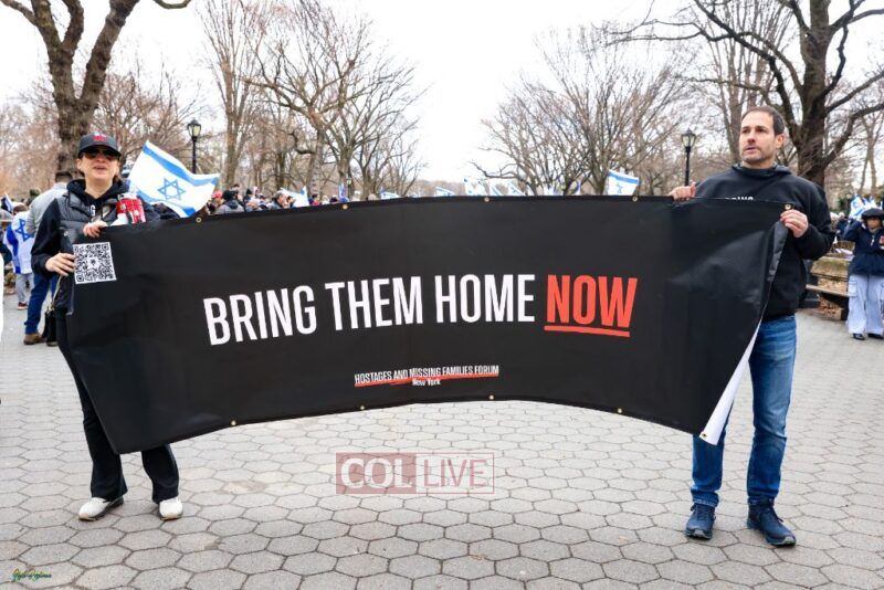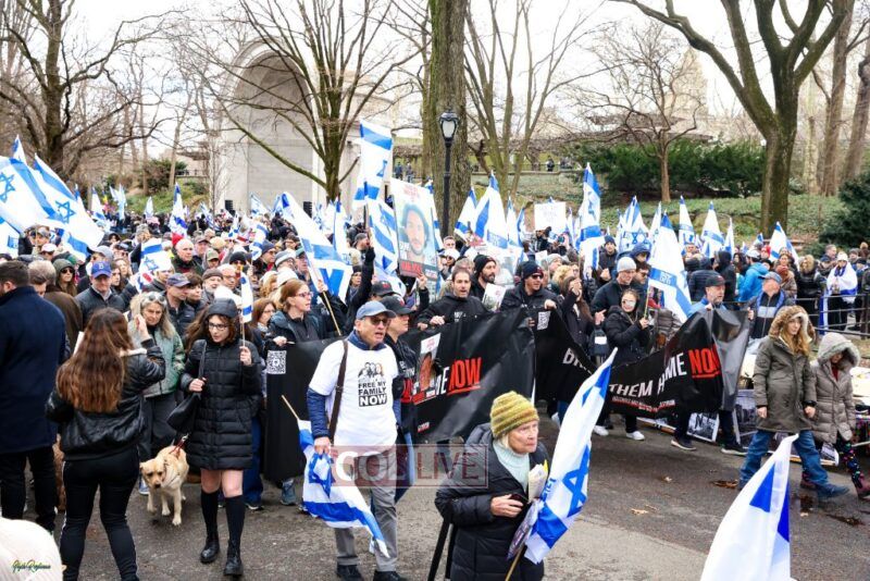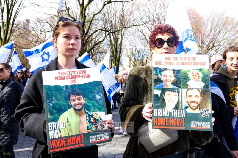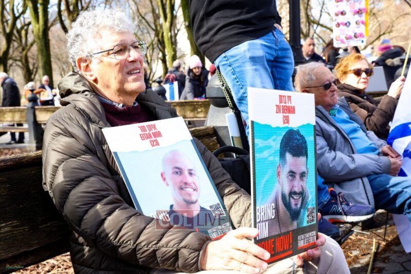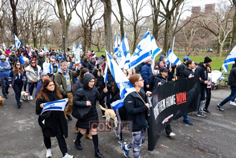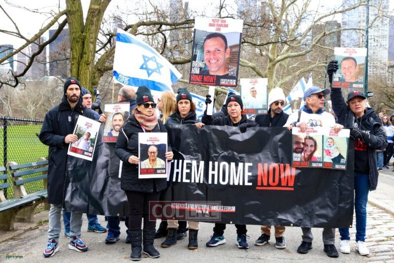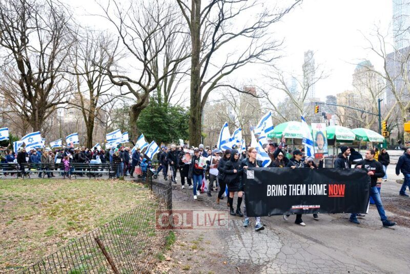 Thousands of demonstrators gathered in Central Park on Sunday morning to mark 150 days since the captives were taken in the devastating October 7 Hamas terror attack on Israel.
