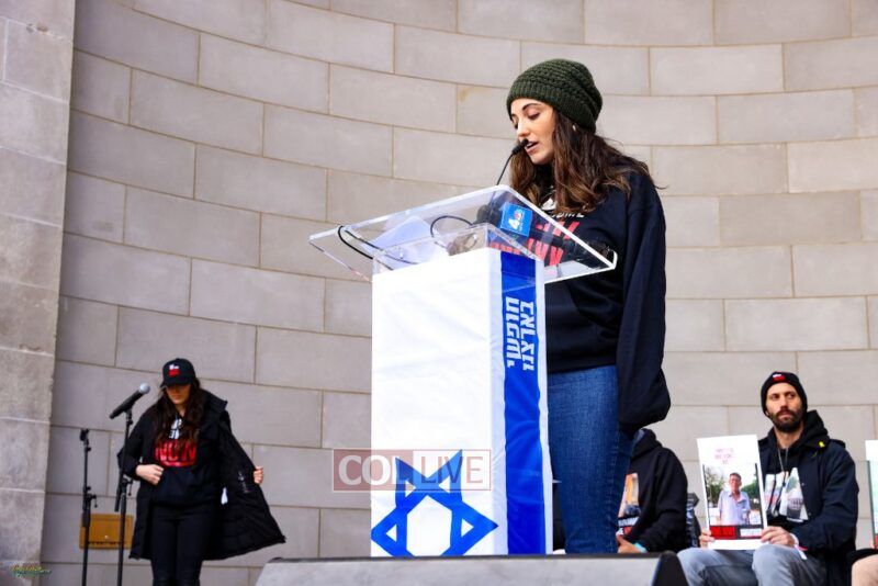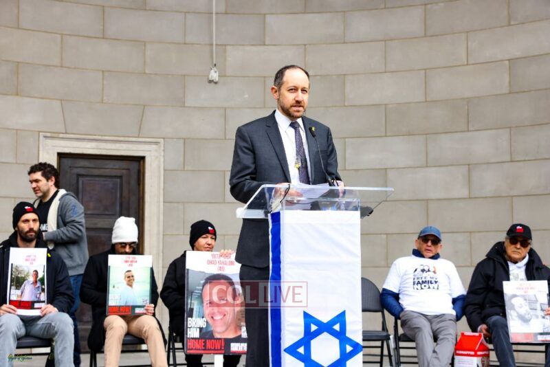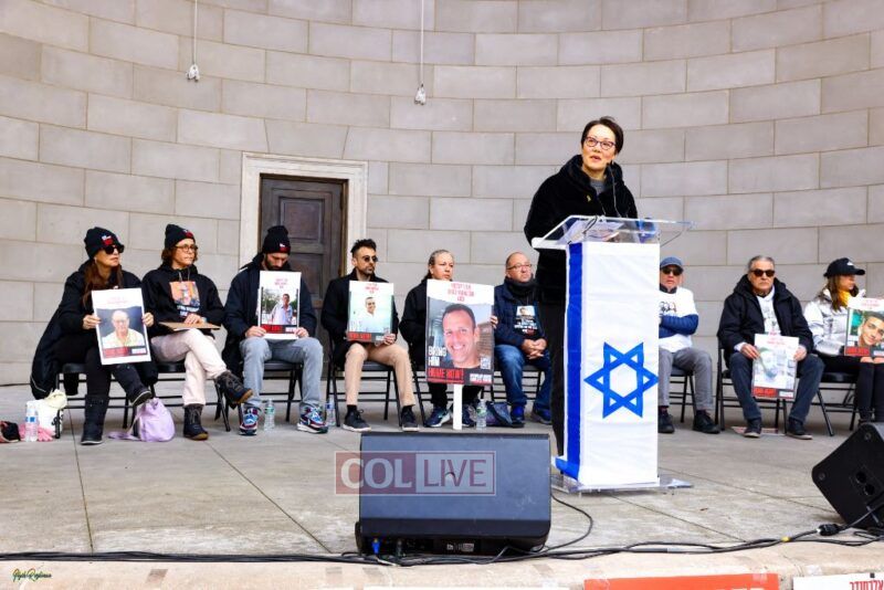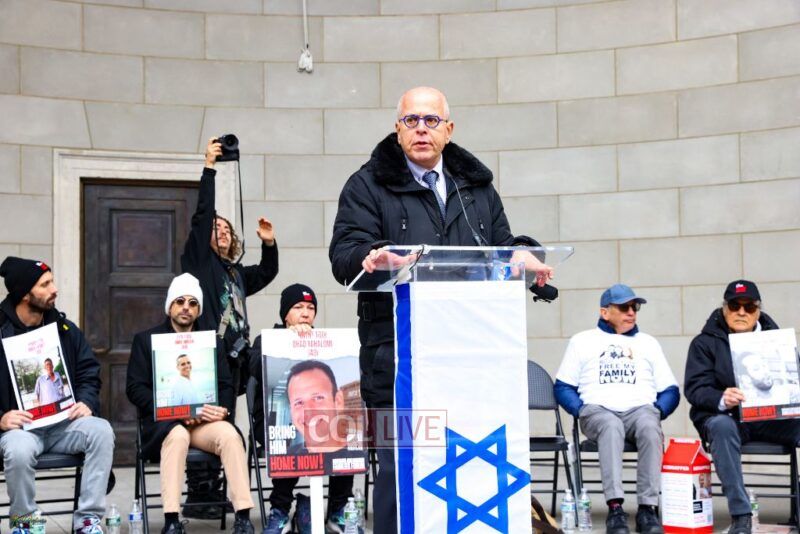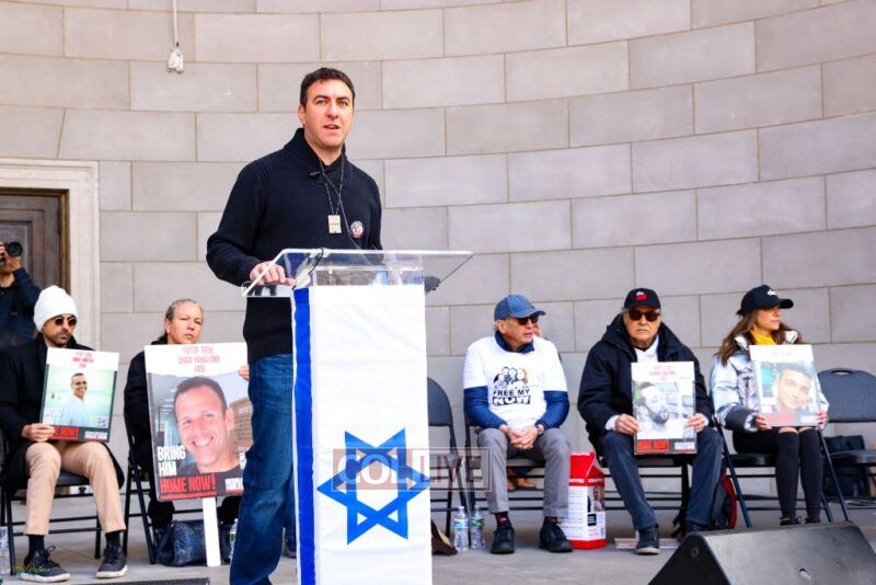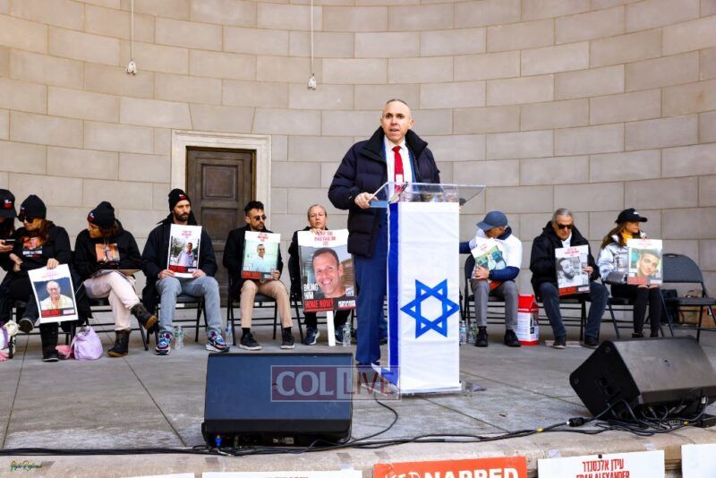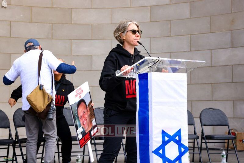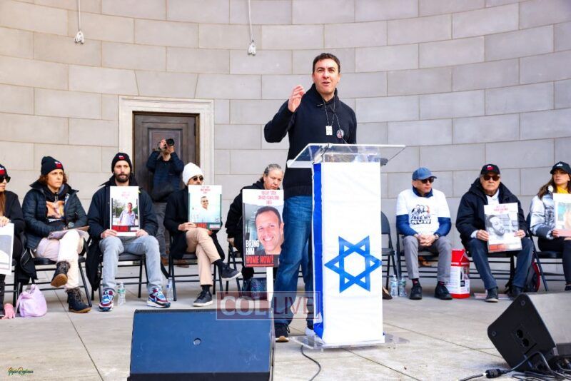 Gilad Korngold, whose son Tal Shoham was taken hostage from his home on Kibbutz Beeri, urged the crowd to pressure elected officials to take action to release the captives.