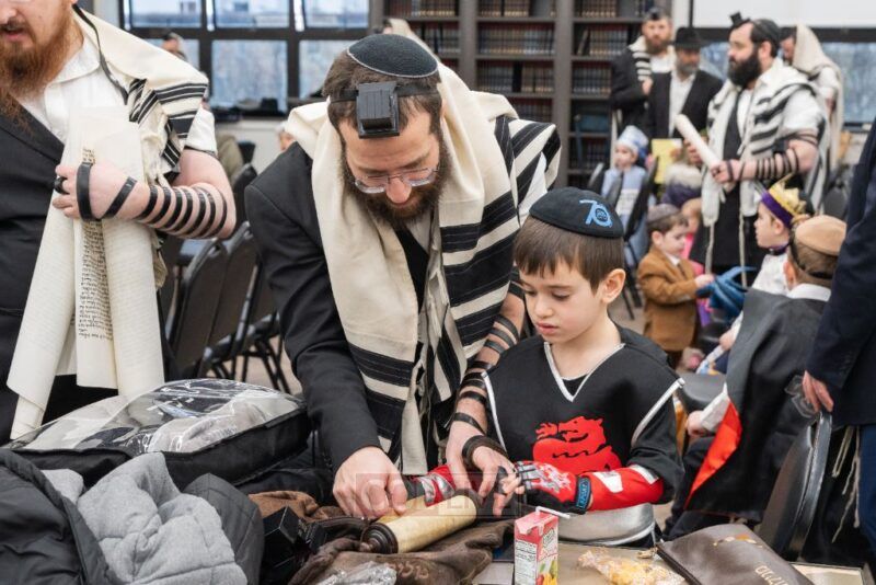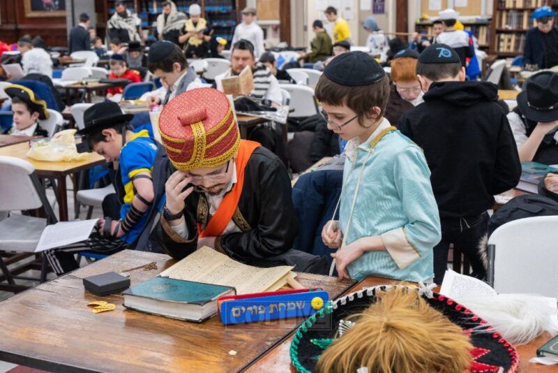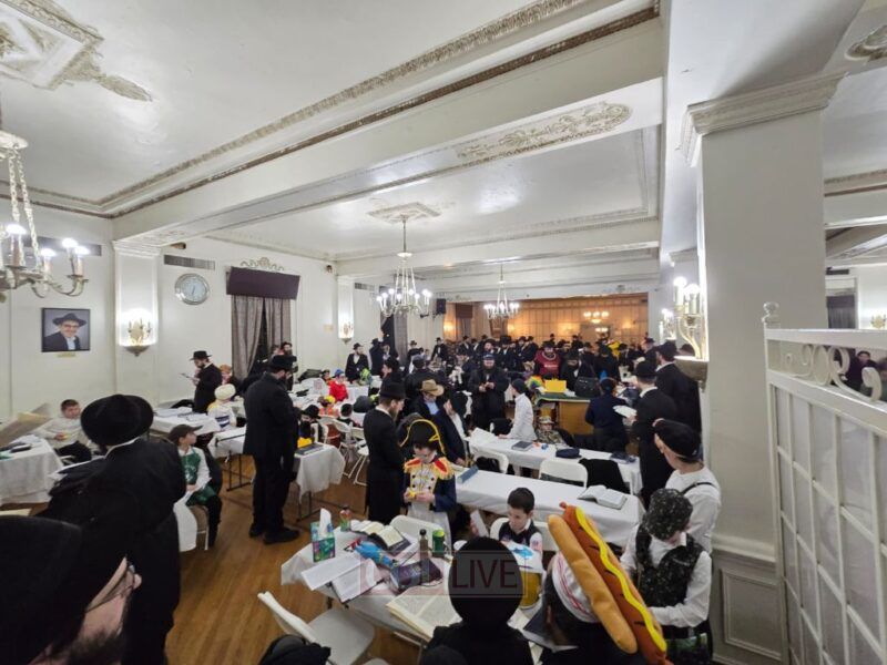 Purim day continued with a well organized program featuring three simultaneous minyanim, each with its own chazan and baal koreh, allowing everyone to comfortably participate in davening and hear the Megillah. Classes were given assigned tables where talmidim gathered together and brought their mishloach manos for their meetups, creating a structured and meaningful environment for the boys to celebrate with their friends and Rebbeim. Two dedicated women’s sections were arranged to accommodate the many mothers who joined the program as well.