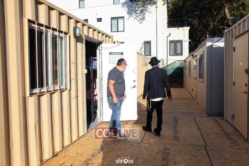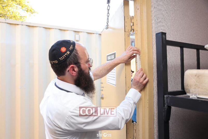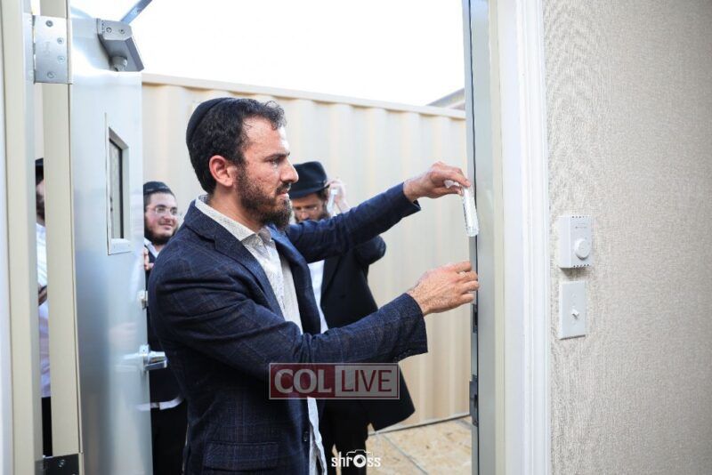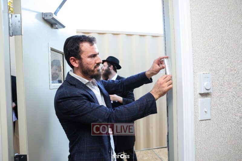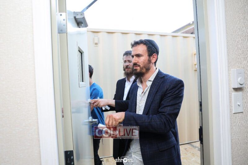The facility offers a spacious and convenient solution for 600 guests. Honored at the mezuzah ceremony were Avremel Lokshin, the property owner, and community activists Rabbi Moshe Pinson, Meir Kabakov, and Yudi Grunberg.