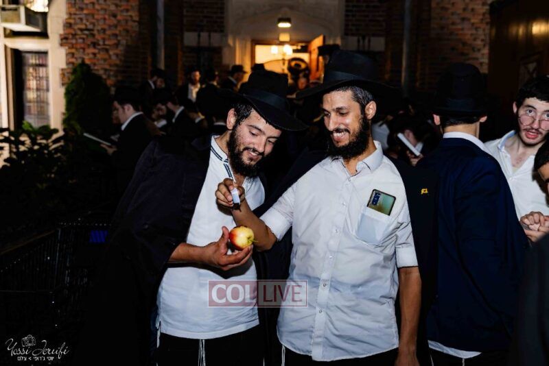 The tent at 770 was filled with residents and guests reciting Tehillim on Hoshana Rabbah, purchasing Hoshanos and eating apple and honey. Photos