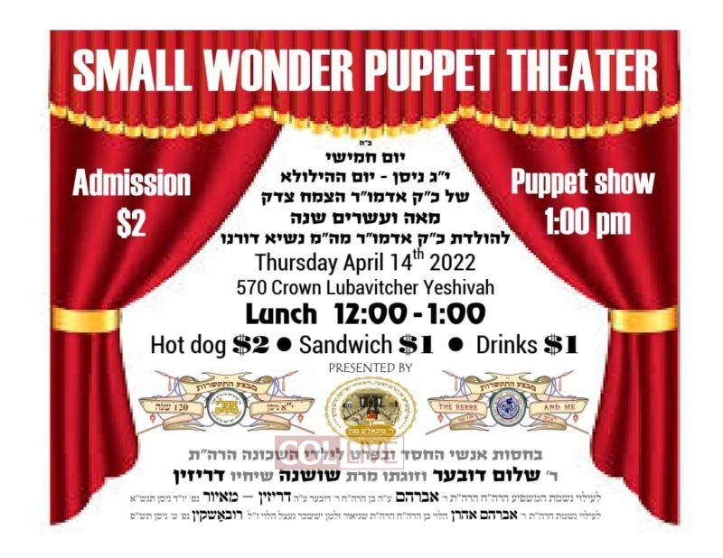 The Small Wonder puppet theater will be showing at Lubavitch Yeshiva in Crown Heights.