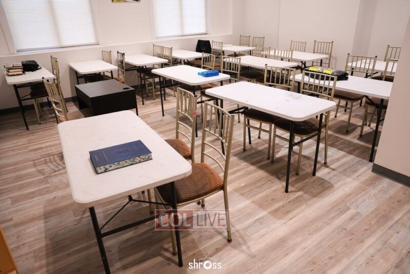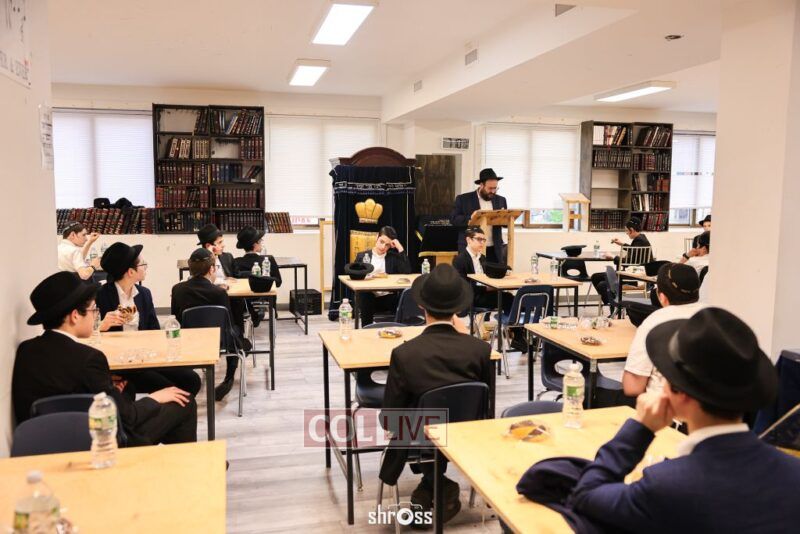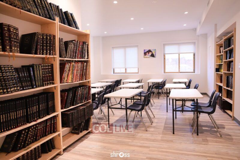 After getting over their excitement at the inviting dorms and fresh paint smells, the bochurim proceeded to the main study hall, where another surprise awaited – the Yeshiva rented an additional floor above the study hall and set up spacious classrooms along with a teachers’ room and administrative offices.
