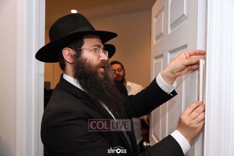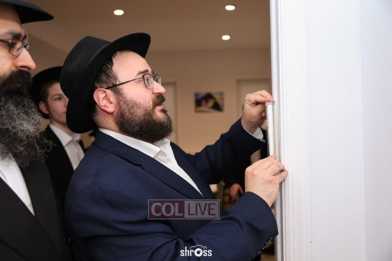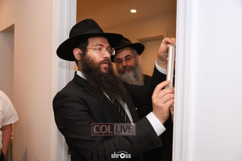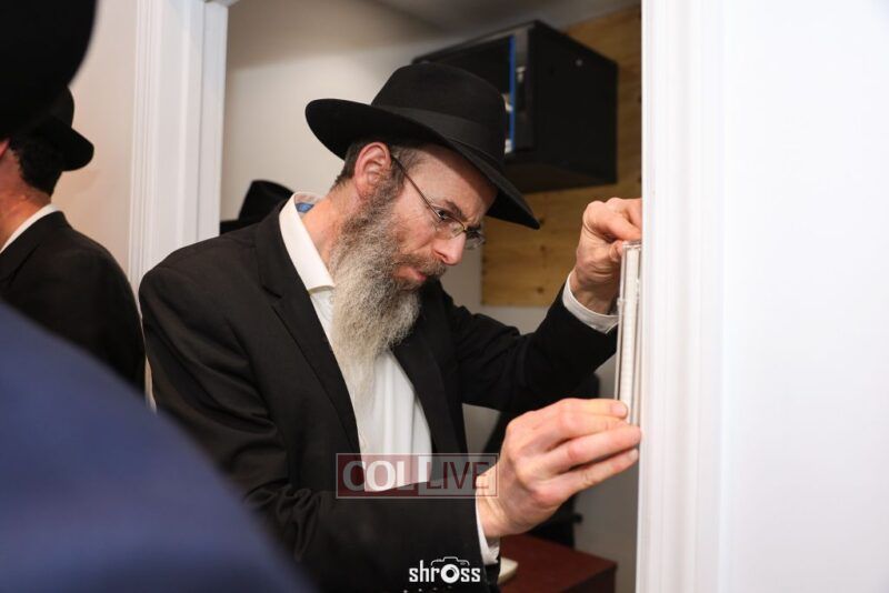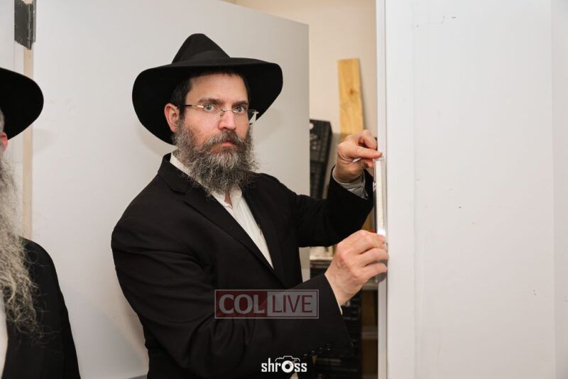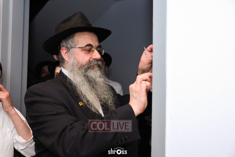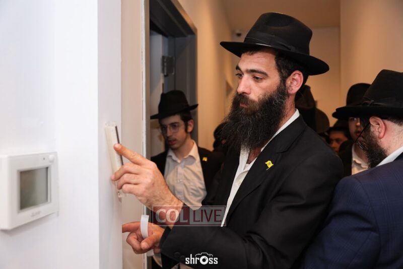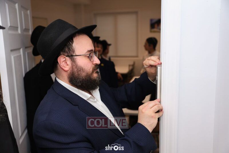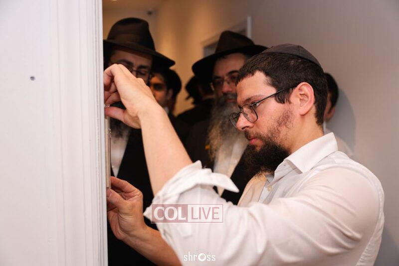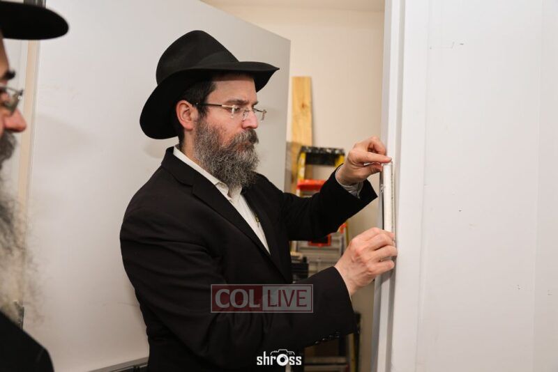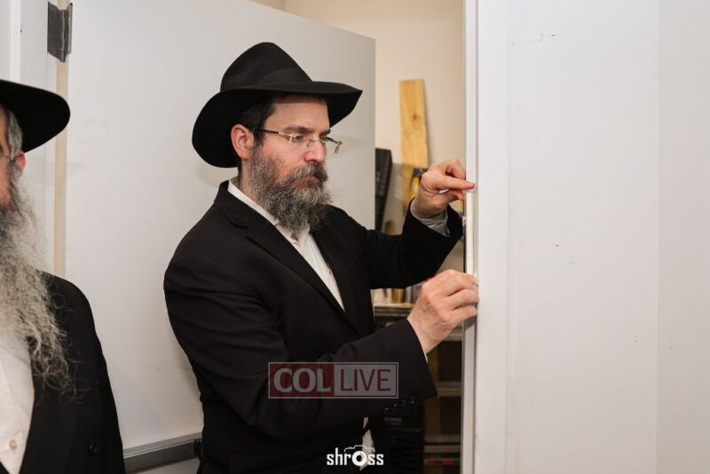 The members of the Hanhala affixed the mezuzos in the new floor, and afterwards sat with the talmidim for a farbrengen on Chof-Ches Nissan, rousing them to accept good hachlatos to bring the hisgalus of the Rebbe now!