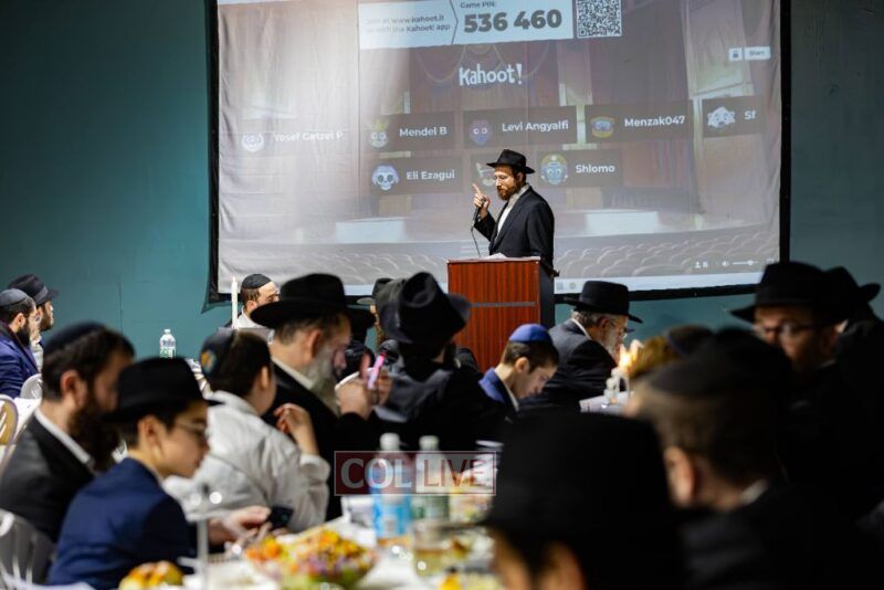 The Yeshiva organized two grand Melava Malka Farbrengens – one for the Young/Middle Division on 19 Kislev and another on 10 Shevat for the Older Division this past Motzei Shabbos. Fathers and sons gathered at the Yeshiva for a delightful and uplifting evening, including a full dinner, video of the Rebbe, learning a Sicha, reading Rebbeim stories, a student-made video presentation, and an interactive Kahoot Live game relevant to the Yama D’Pagra.