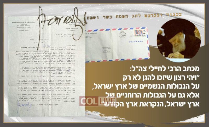 Later the Rebbe refers to IDF soldier’s military service, stating that surely, they do not need to be reminded of this uniqueness of the Jewish people and blessing them that they merit defending not only the physical borders of Eretz Yisrael but also its spiritual ones: