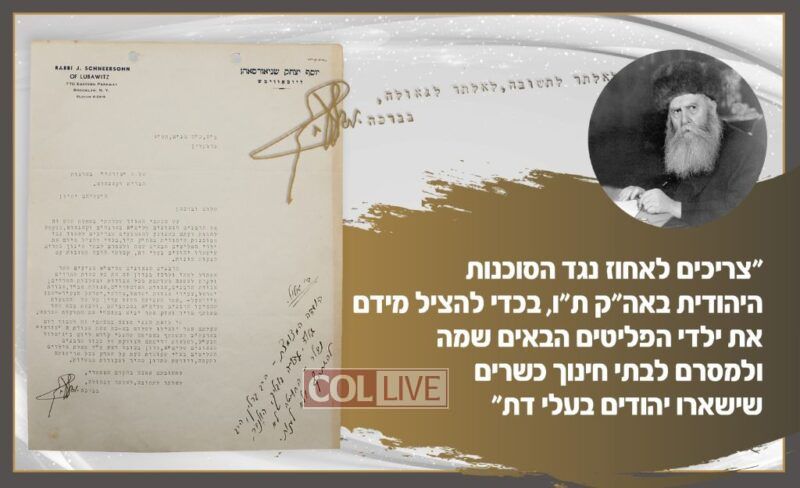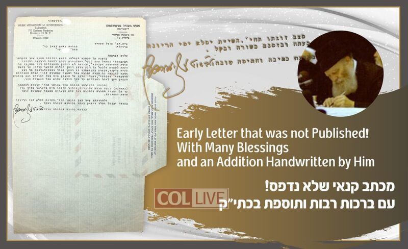 A letter by the Rebbe that surprisingly reached Moreshet Auctions and is relevant to these days