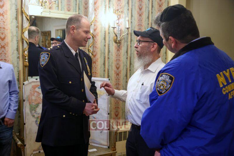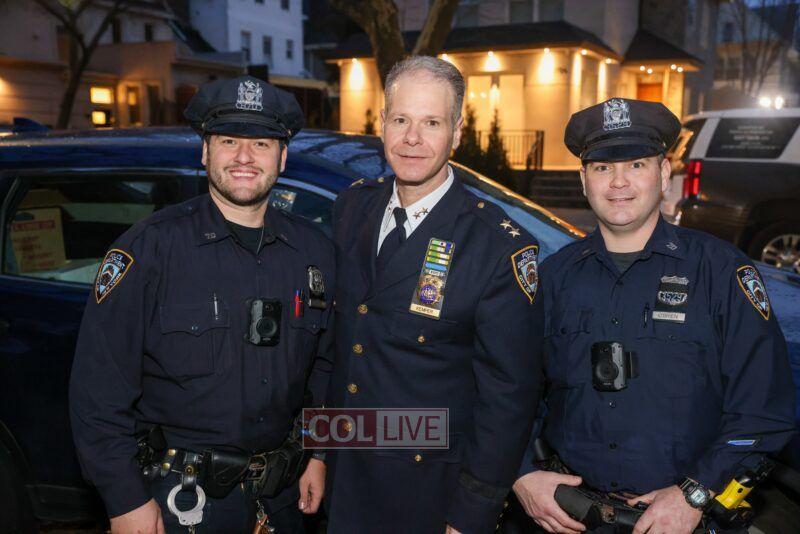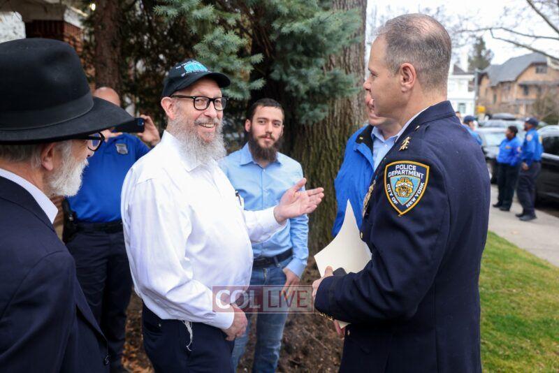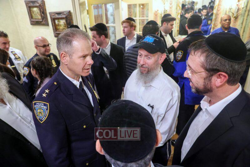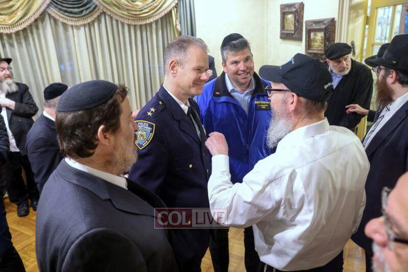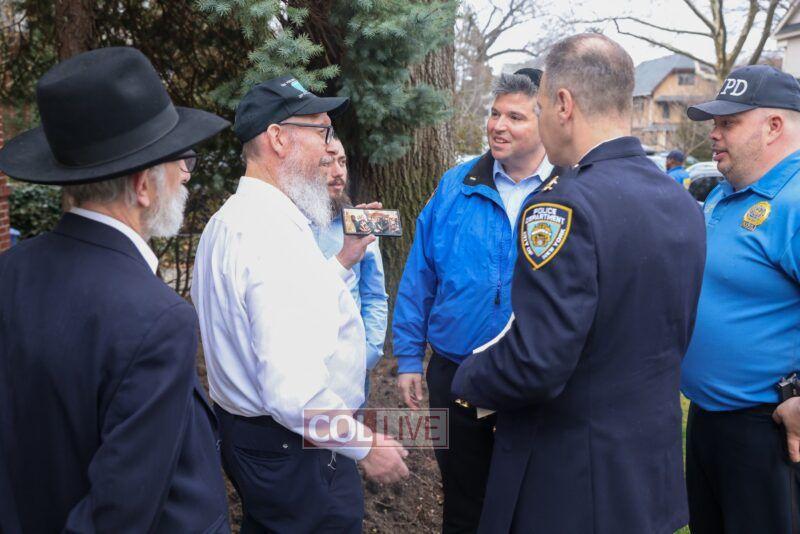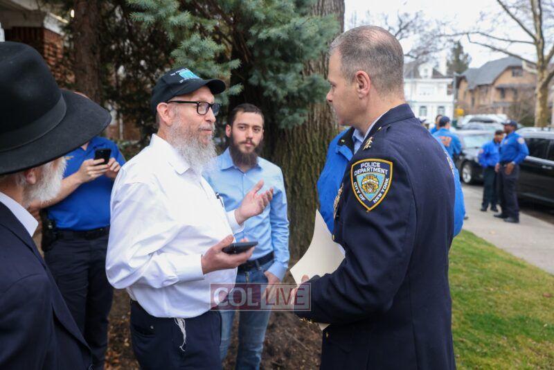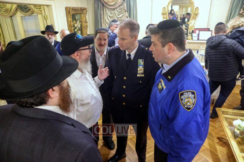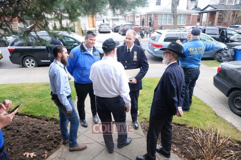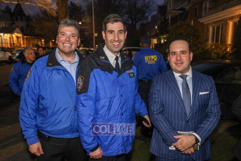 High ranking officers from the NYPD Chief Michael M. Kemper, inspector Richie Taylor, lieutenant Ira Jablonsky and members of the Brooklyn South Community task force, Sephardic community leader David Heskiel, as well and Rabbis from the Flatbush area were present to honor and pray for the two Police Officers and to hope and pray that the killing does not happen again.