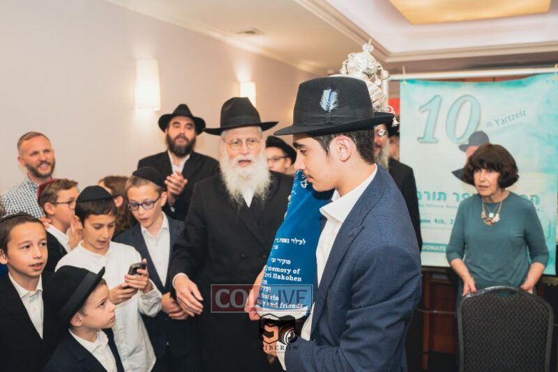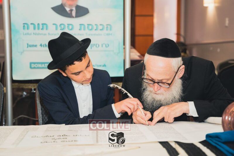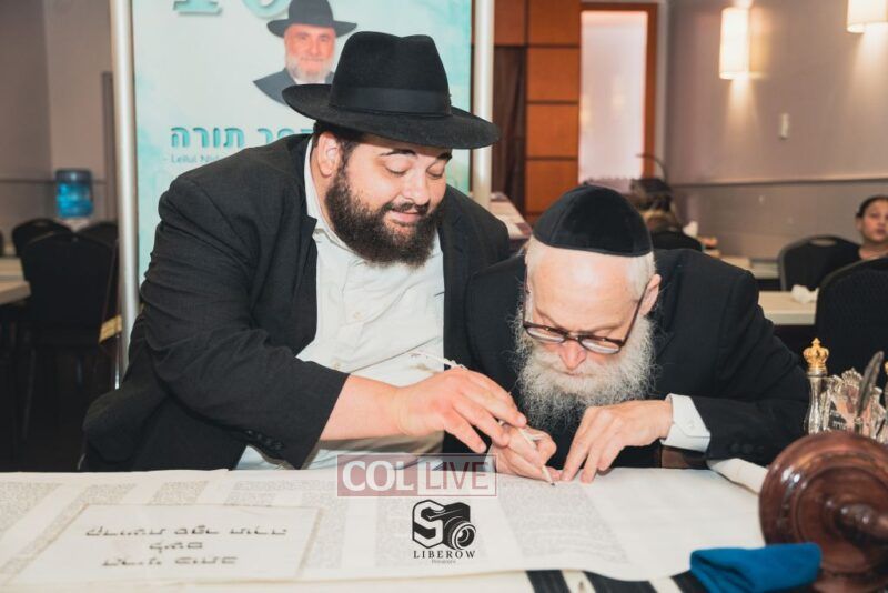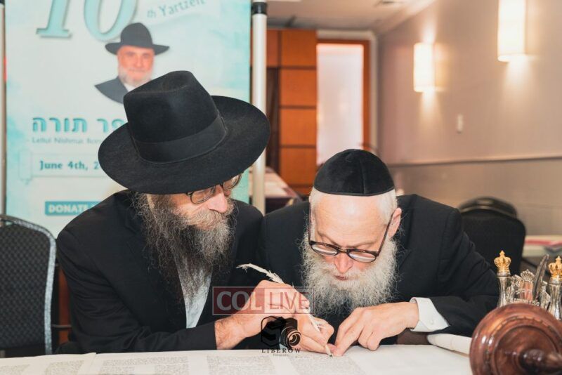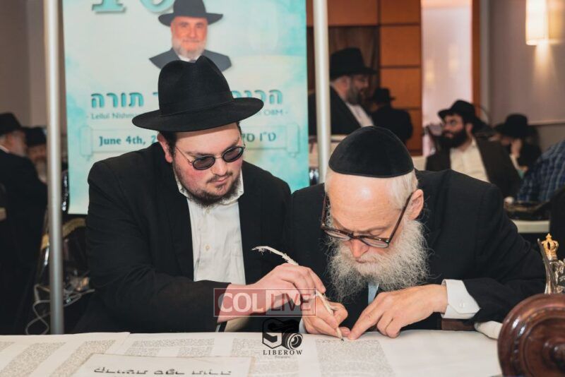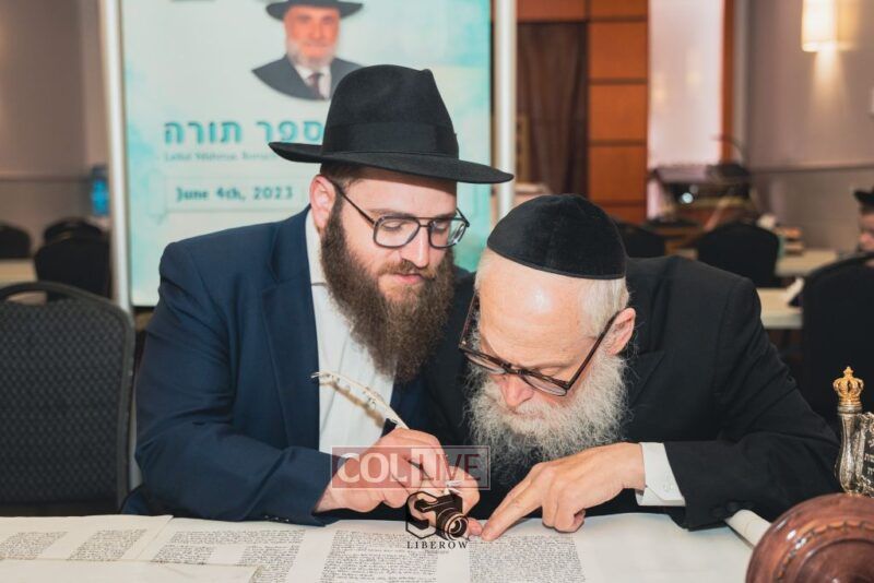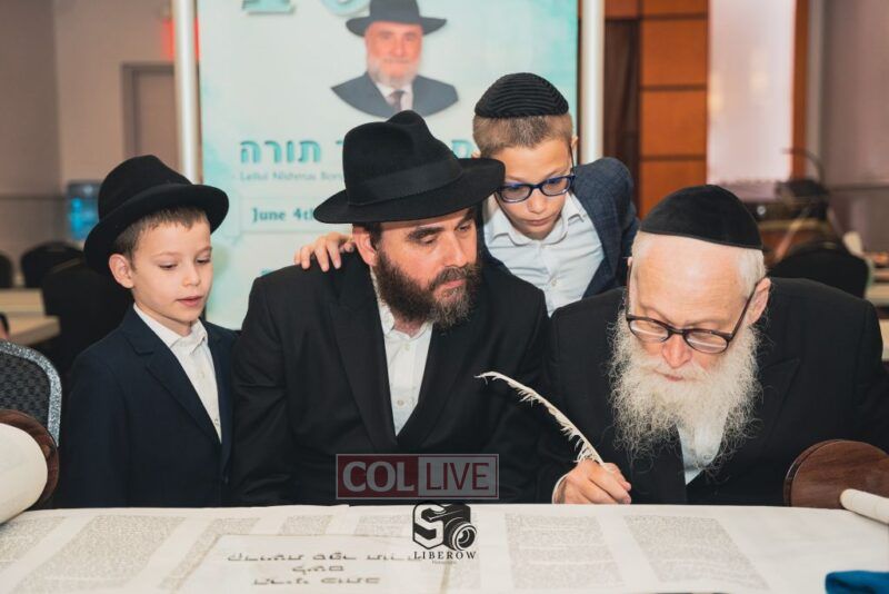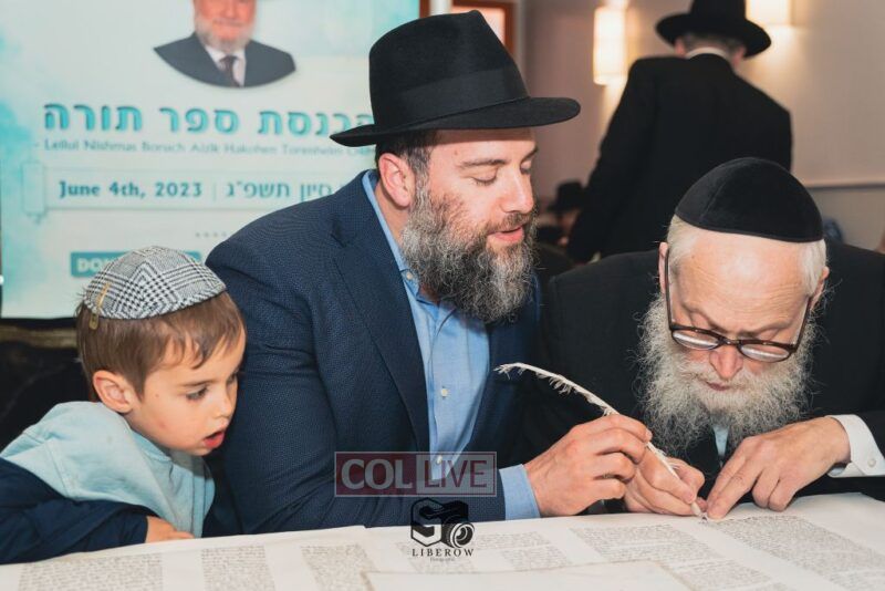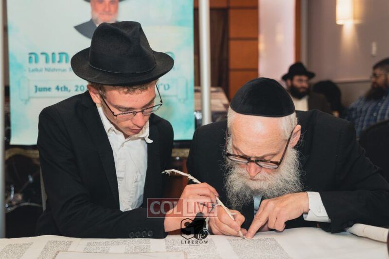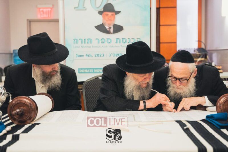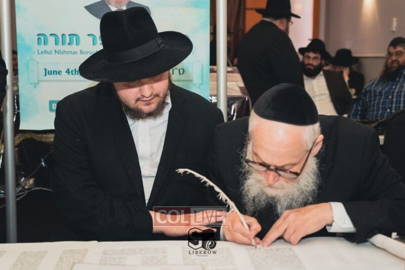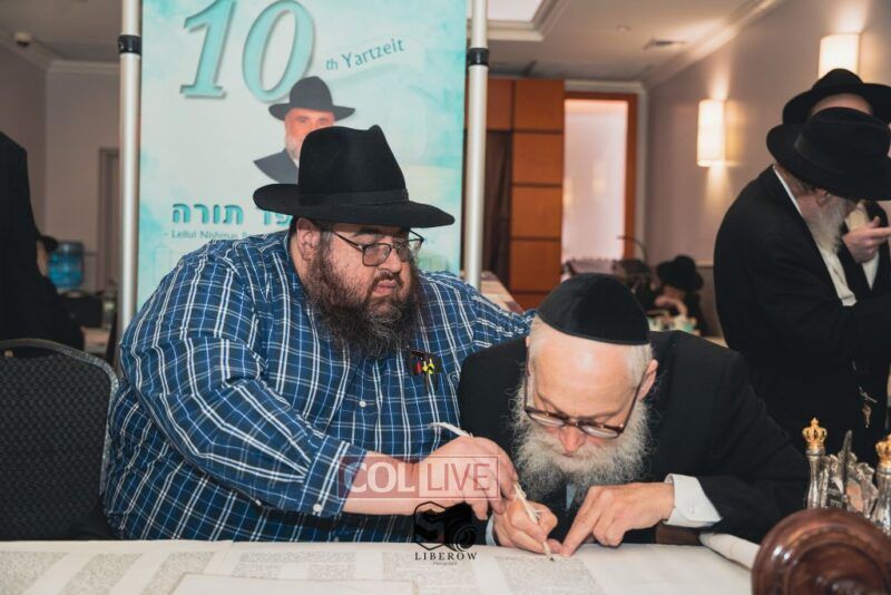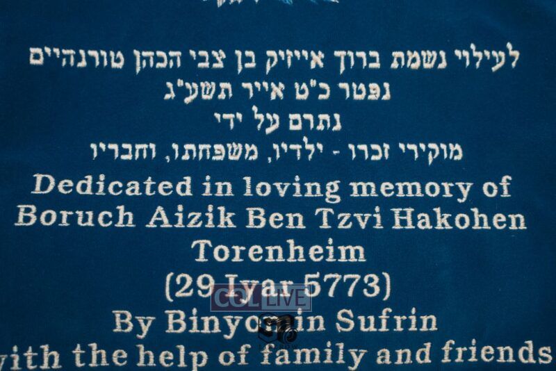 A new Torah was dedicated on Sunday by the Torenheim family in honor of the 10th Yartzeit of R’ Boruch Aizik Hakohen Torenheim OBM.
