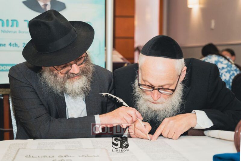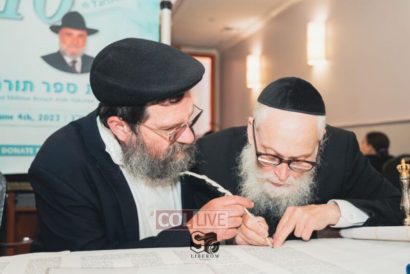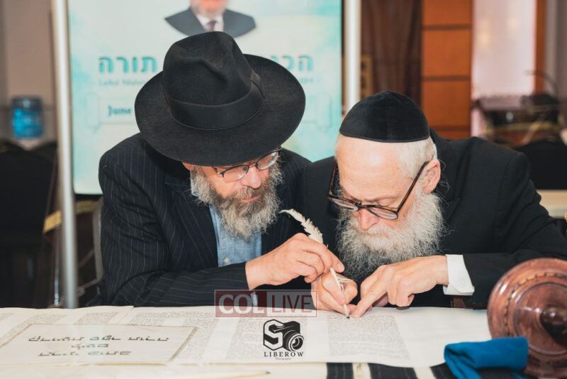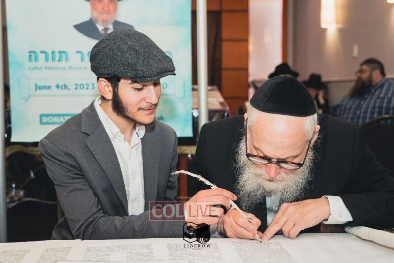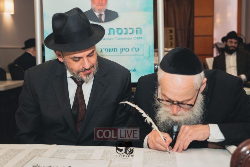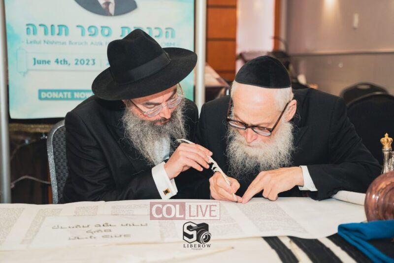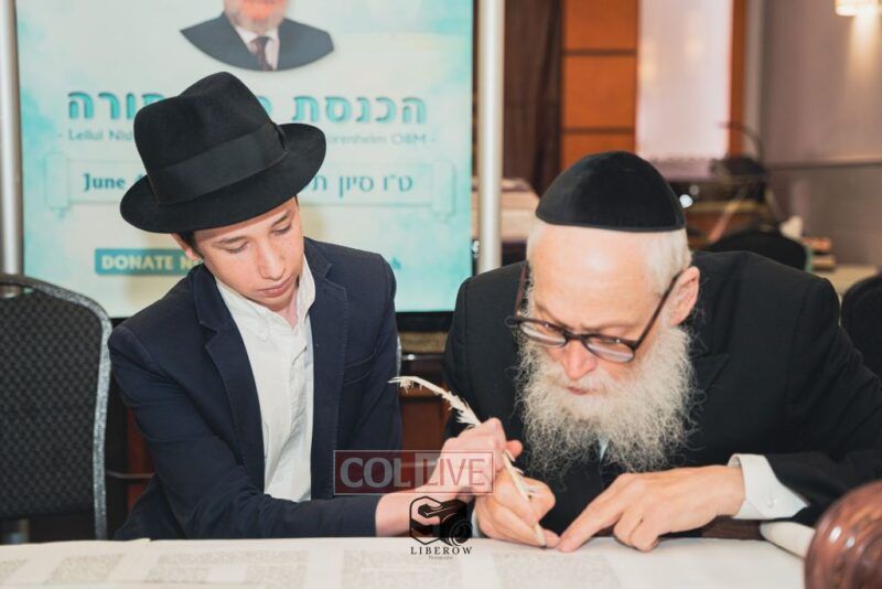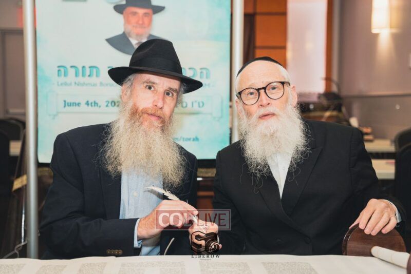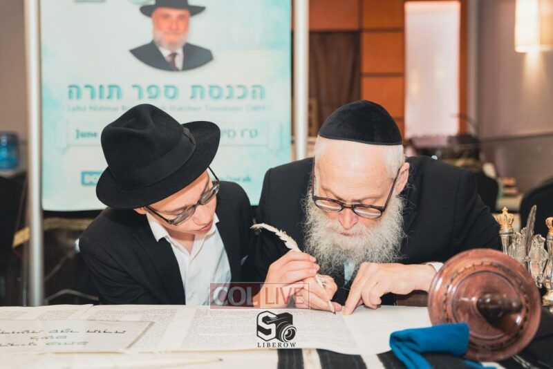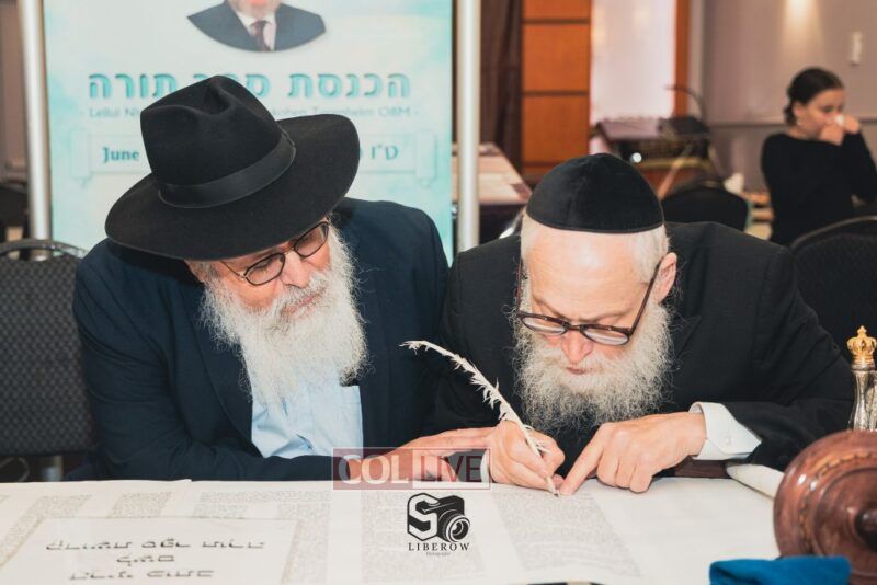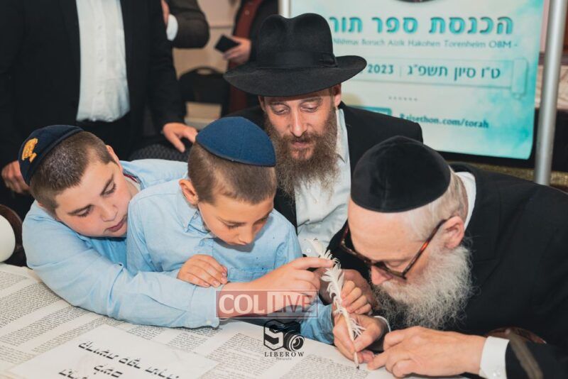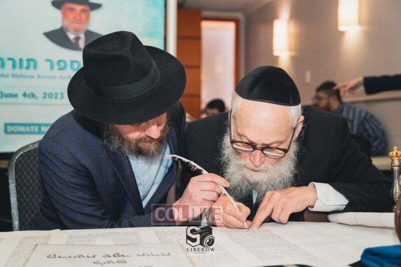 A new Torah was dedicated on Sunday by the Torenheim family in honor of the 10th Yartzeit of R’ Boruch Aizik Hakohen Torenheim OBM.