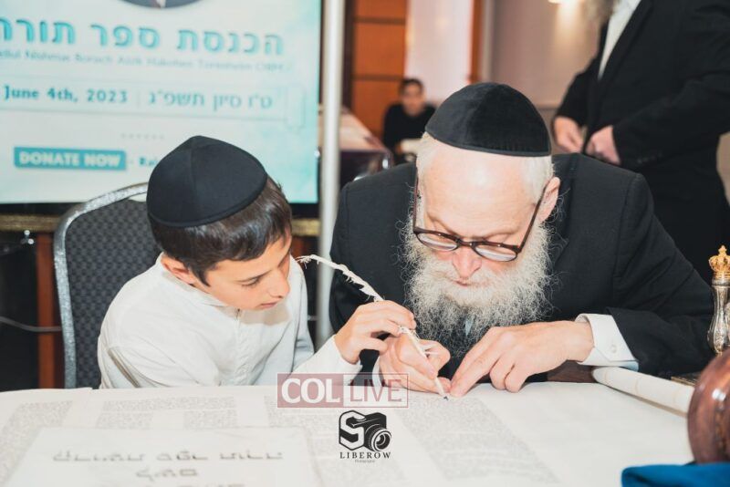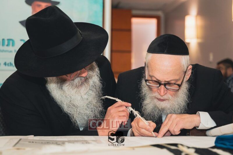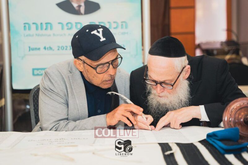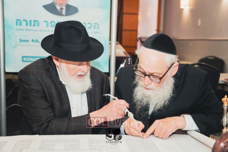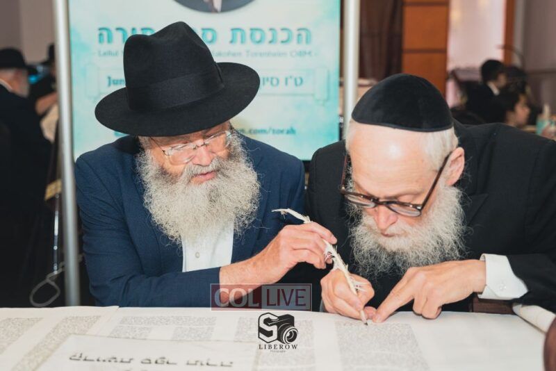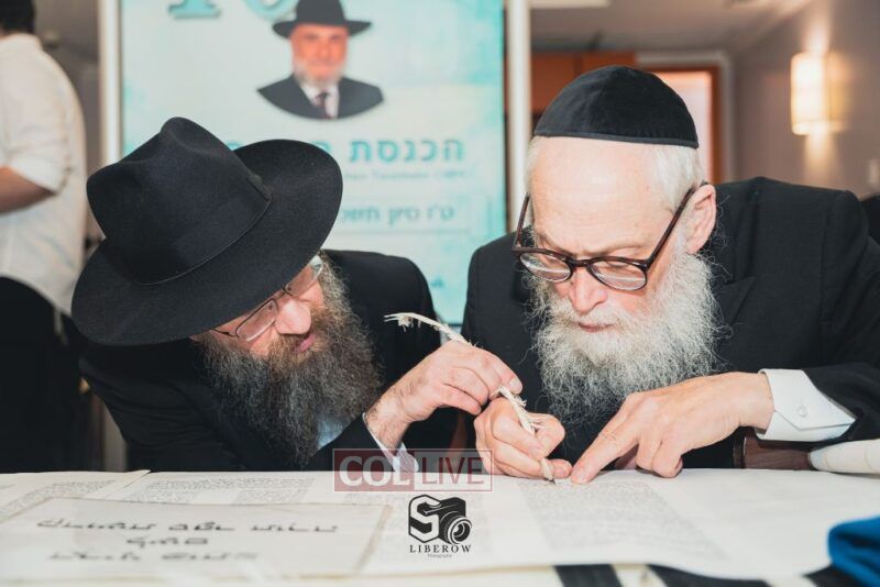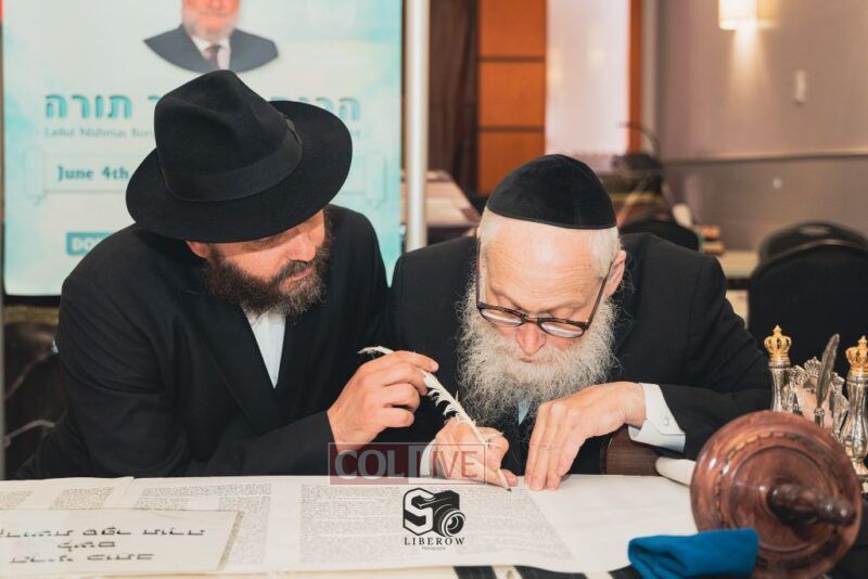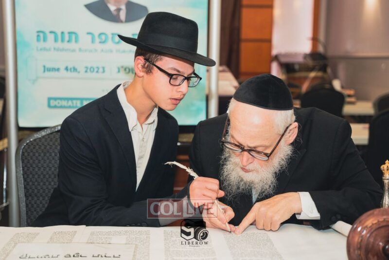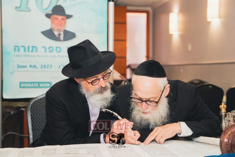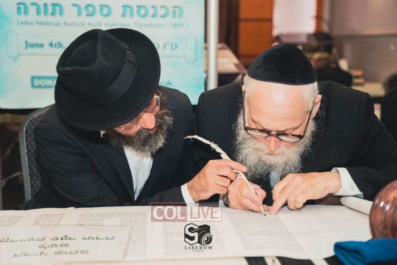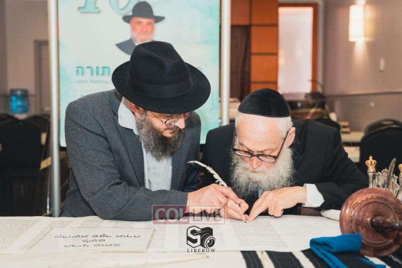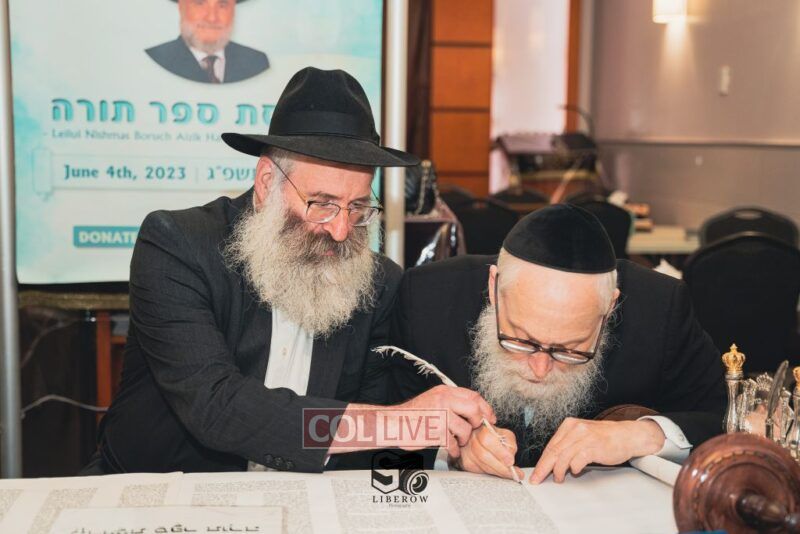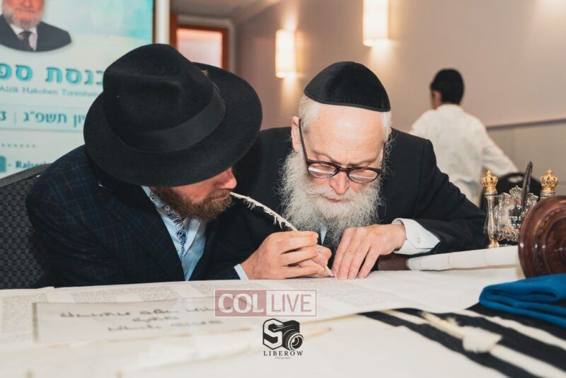 A new Torah was dedicated on Sunday by the Torenheim family in honor of the 10th Yartzeit of R’ Boruch Aizik Hakohen Torenheim OBM.