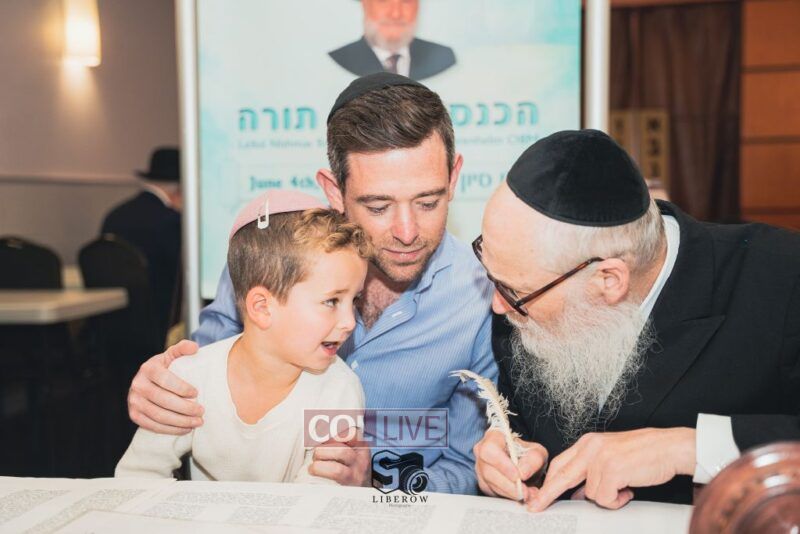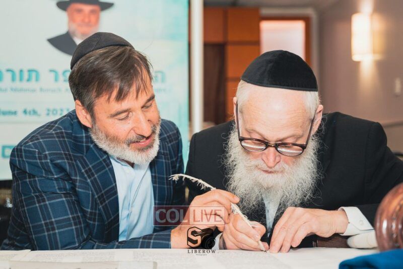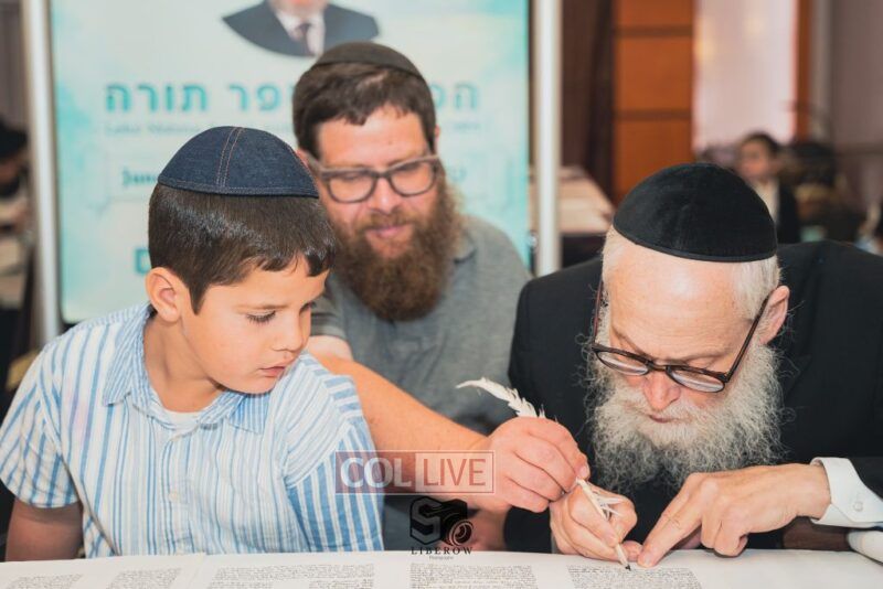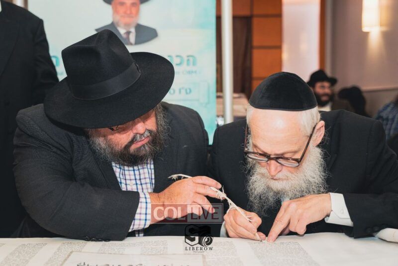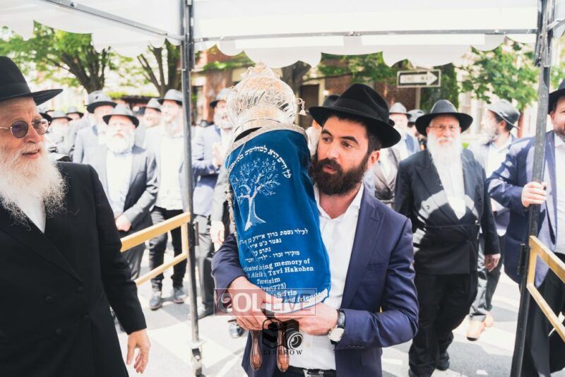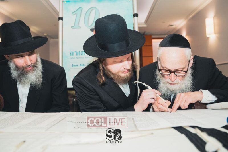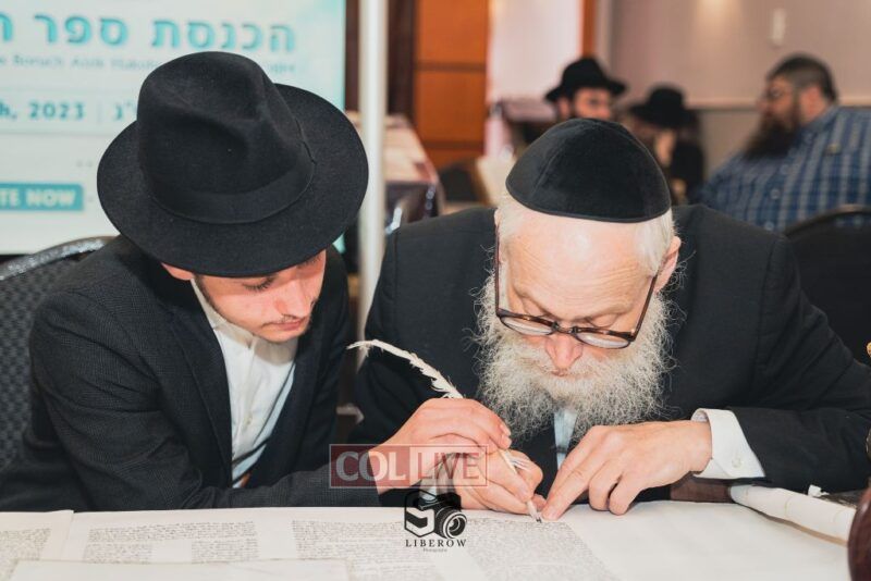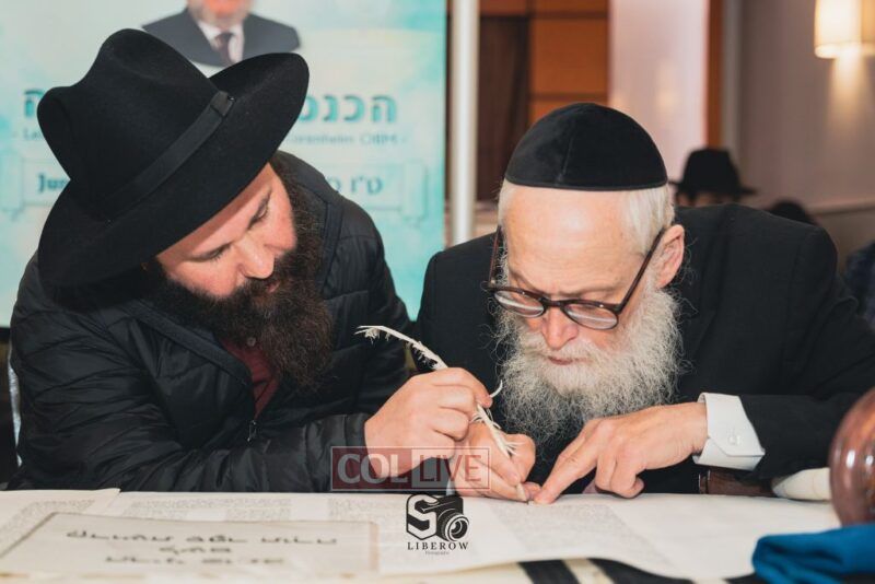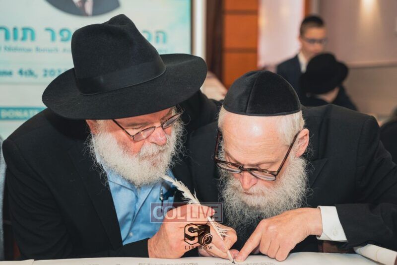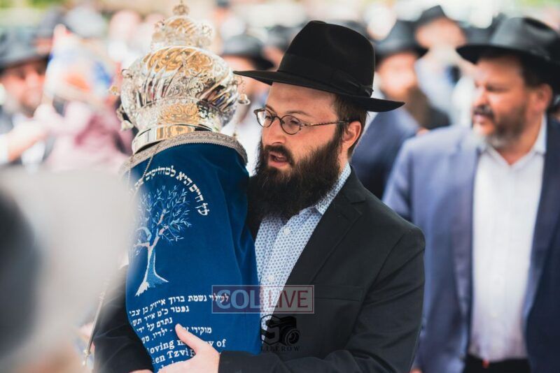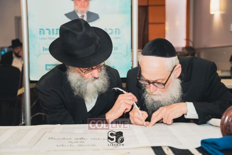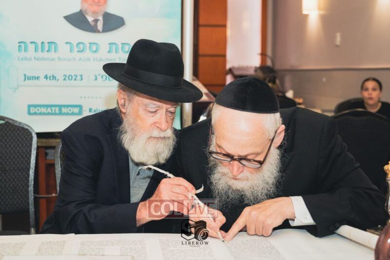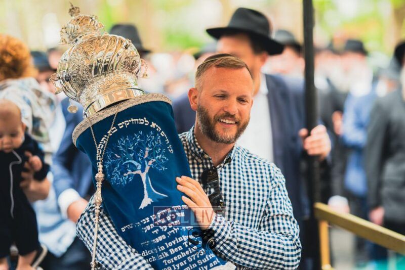 A new Torah was dedicated on Sunday by the Torenheim family in honor of the 10th Yartzeit of R’ Boruch Aizik Hakohen Torenheim OBM.