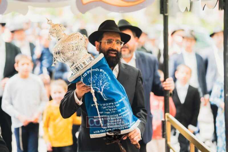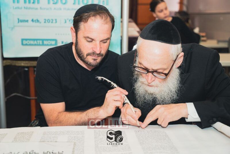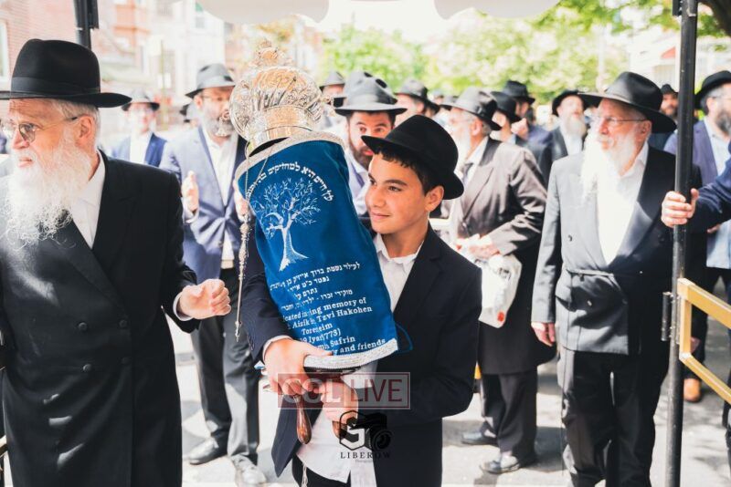 The Torah was completed by Sofer Rabbi Moshe Klein at Bais Gimpel Chaim Shul, followed by a joyous procession to Getzel’s Shul on Kingston Avenue.