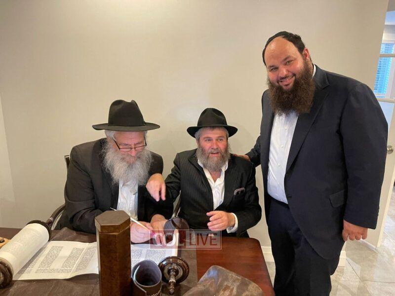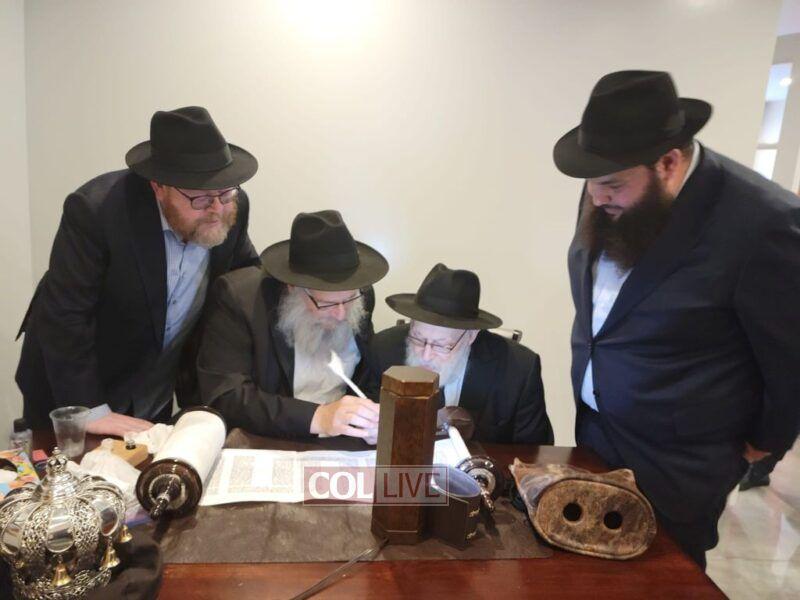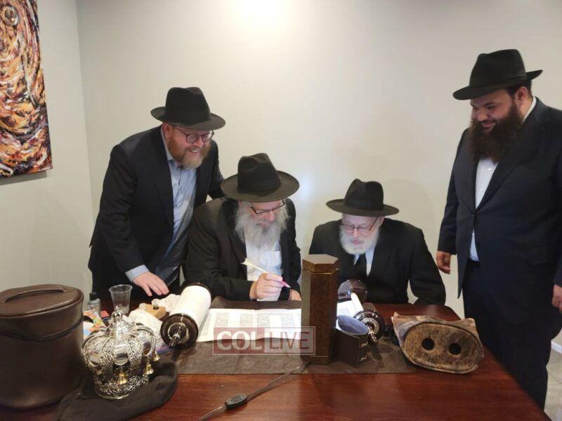 The Rebbe’s secretary, Rabbi Yehuda Krinsky, Rabbi Shmaya Krinsky of Machne Israel and Rabbi Moshe Pinson, Founder of Bais Shmuel Chabad were on hand for the writing.