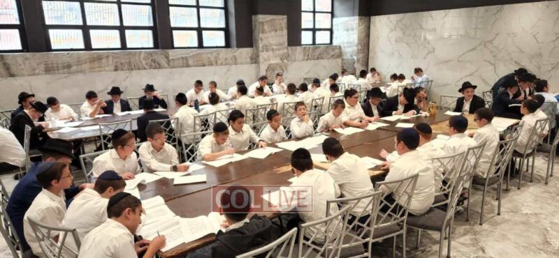 With school closed today, Labor Day, due to Eastern Parkway being closed off, Oholei Torah’s 6th and 7th Grade students were offered an optional seder in honor of Chai Elul, the birthdays of the Baal Shemtov and The Alter Rebbe.
