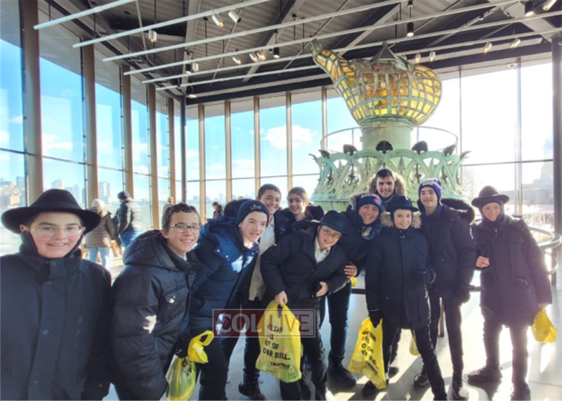 Following shachris, the boys hopped on the subway and traveled to the tip of Manhattan … Battery Park! They walked a short distance and went through security to board a ferry to the Statue of Liberty, one of the world’s most iconic statues. The boys enjoyed the museum and learned many facts about the history of the island. Re-boarding the ferry they continued on to Ellis Island, once the busiest immigration station in the United States. Walking through the halls and rooms, one can feel the history. The boys learned about the accommodations frum Jews received while passing through Ellis Island, and much more. After completing their tour in New York Harbor, the group returned to Crown Heights to spend time on Kingston Ave.