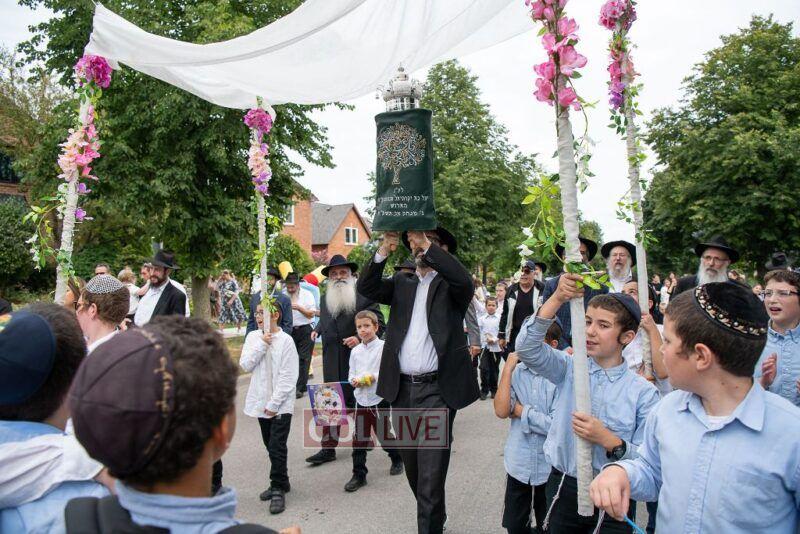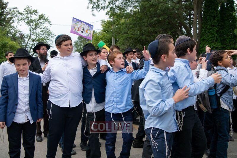 A grand Hachnasas Sefer Torah celebration was held on Sunday. The completion of the Torah took place at Beis Franklin shul, next door to the Cheder. Afterward the Torah was paraded around the block under a chuppah by more than 200 students, Rebbeim, family and friends. The parade began and concluded at the Cheder, and was followed by “Atta Hareisa”, honoring the Harrouch family as well as the Cheder Chabad administration and melamdim. The final passuk was recited by Cheder boys, their sweet voices filling the air. Hakafos followed, coupled with joyous music and dancing. The Cheder boys were also treated to beautiful peklach and other yummy treats.