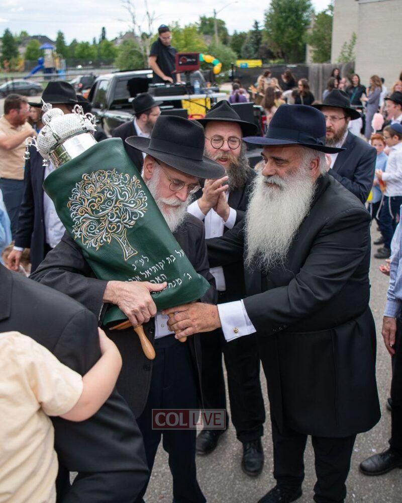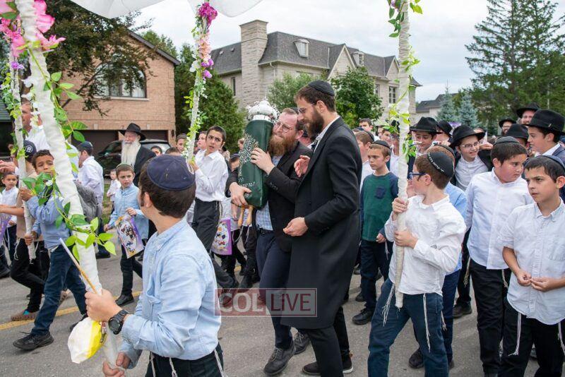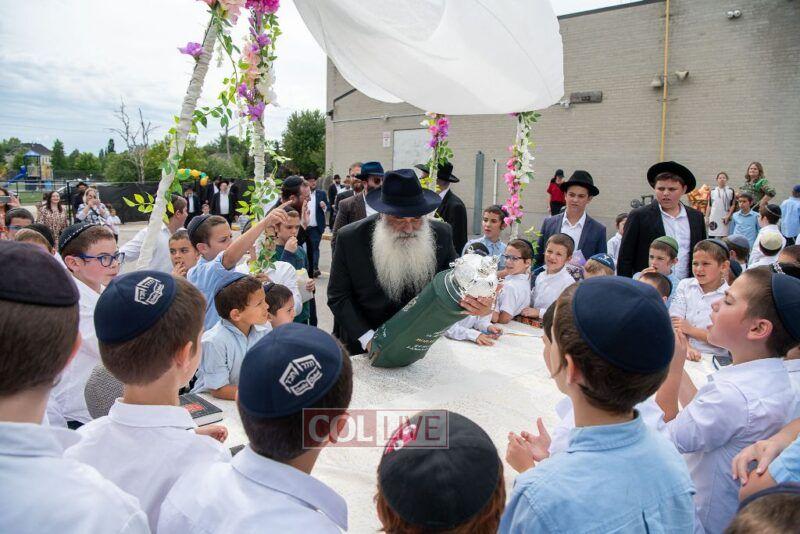 Shmuel Zahavy Cheder Chabad in Toronto joyously received a new Sefer Torah on Sunday, 15 Elul.