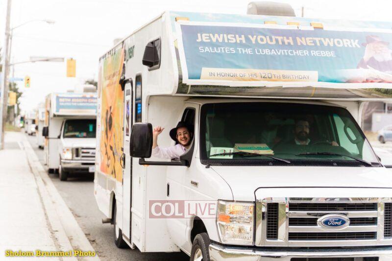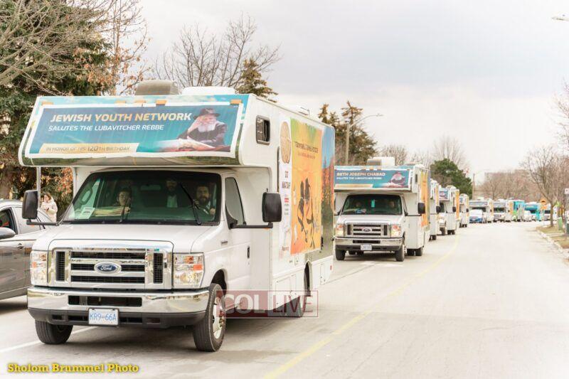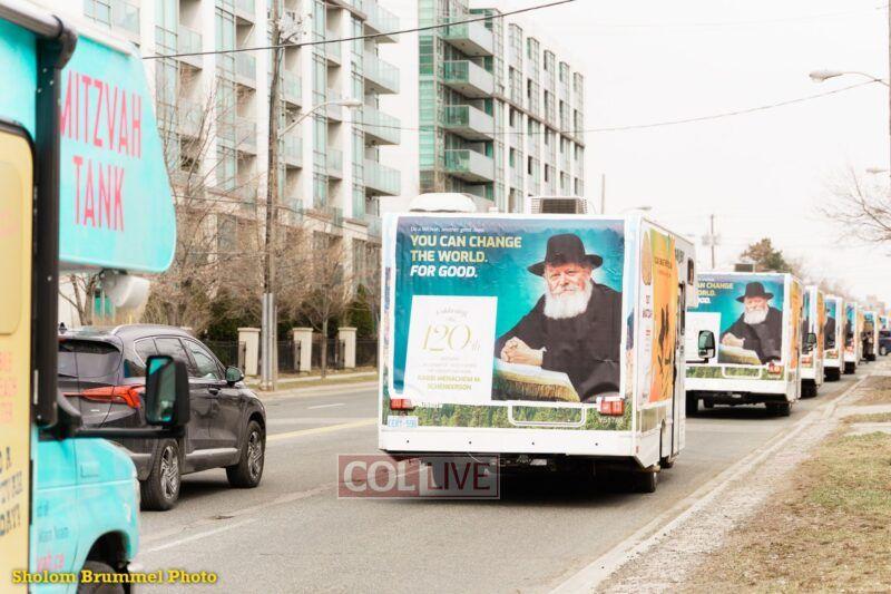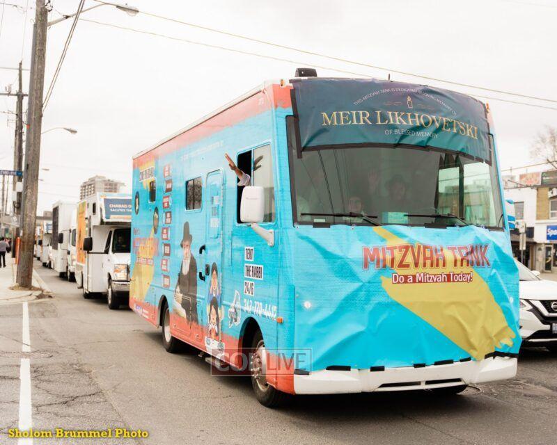 14 Toronto Chabad houses teamed up to create the city’s largest Mitzvah Tank Parade in history, in honor of the Rebbe‘s 120th birthday, and in memory of local bochur Meir Likhovetski obm.