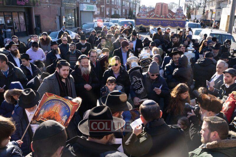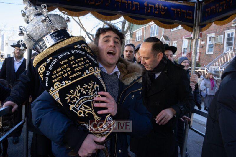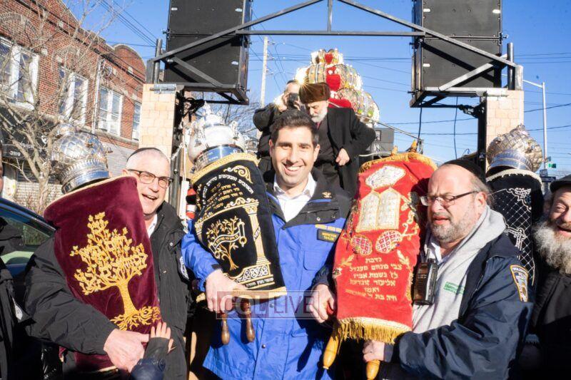 This past Sunday, albeit with a gloomy forecast, the sun radiated onto a crowd of nearly 400, reflecting the light and love that these two holy neshomos illuminated the world with. Eli and Chaim Tovshteyn, together with their families and a big crowd of friends and community members paraded a brand new sefer Torah from Eli’s home, where it was completed, to the Mayan Yisroel synagogue on Avenue N, in Marine Park area.