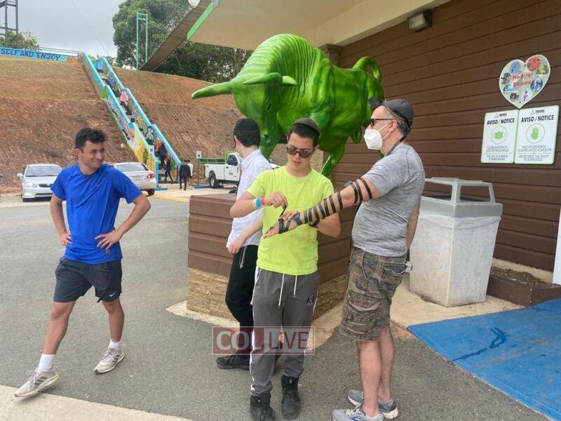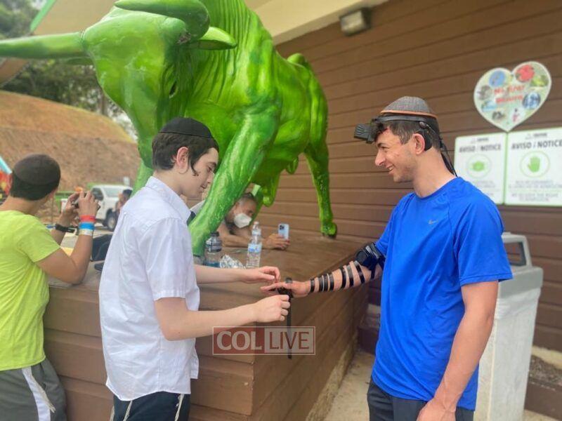 On the zip lining trip, some of the Bochurim with the Shluchim engaged in a conversation with two of the other visitors at the site who revealed that they were Jewish. Immediately upon hearing this, the Bochurim did not waste the opportunity and waited for the men to finish and put on Tefillin with them. One of the men informed them that this was his first time doing it, making it a great Simcha right there on the zip lining mountaintop.