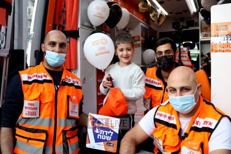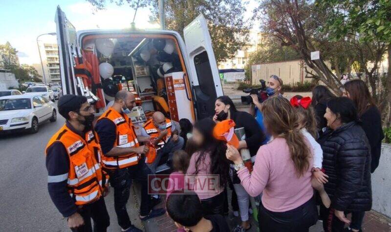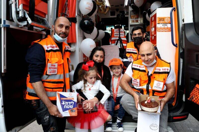 Yesterday, Avi and the other volunteers met up with Moran and her children, and Avi brought the same ambulance so that the children could celebrate their birthday in the very place of their birth. The volunteers bequeathed the twins with presents to mark the occasion.