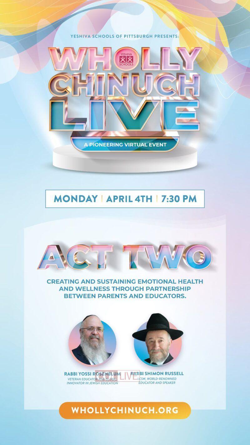 Tune in to the Wholly Chinuch event, Monday April 4, 2022 on Whollychinuch.org and on COLlive.com.