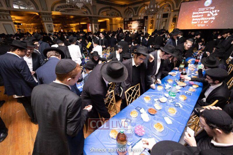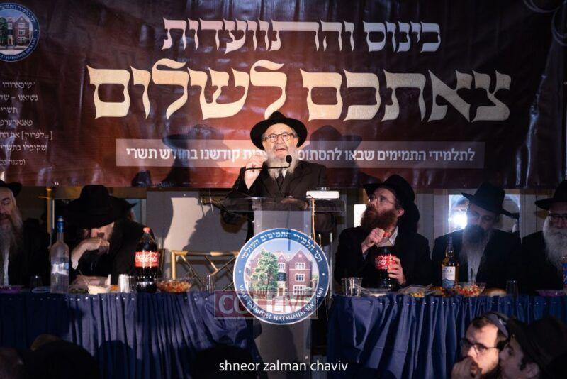 As every year, on the evening of Isru Chag, hundreds of Tishrei guests gathered in Oholei Torah ballroom for a special Tzeischem L’Shalom farewell event hosted by Vaad Talmidei Hatmimim, with the participation of Rabbonim, Shluchim and known Mashpiim.