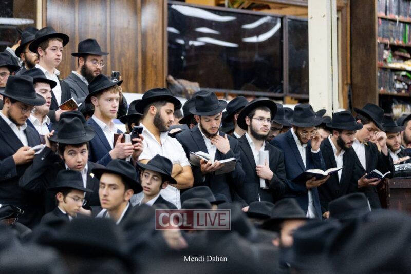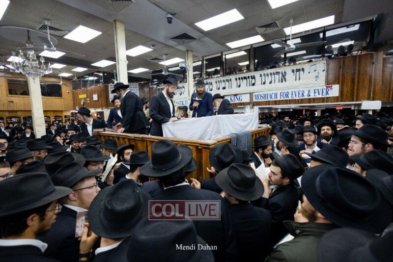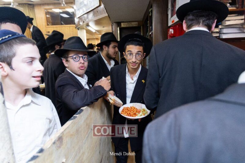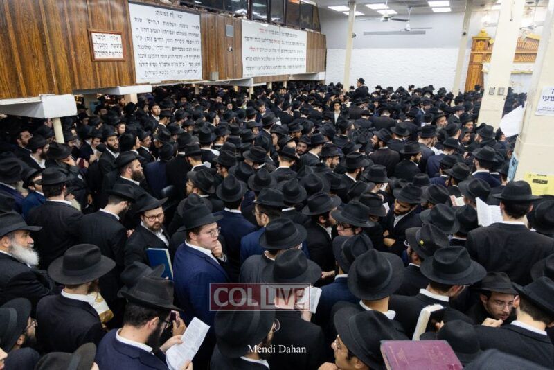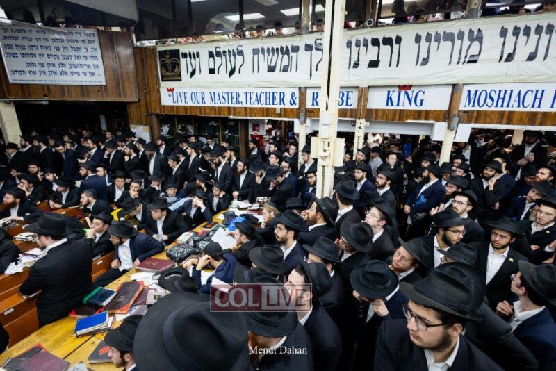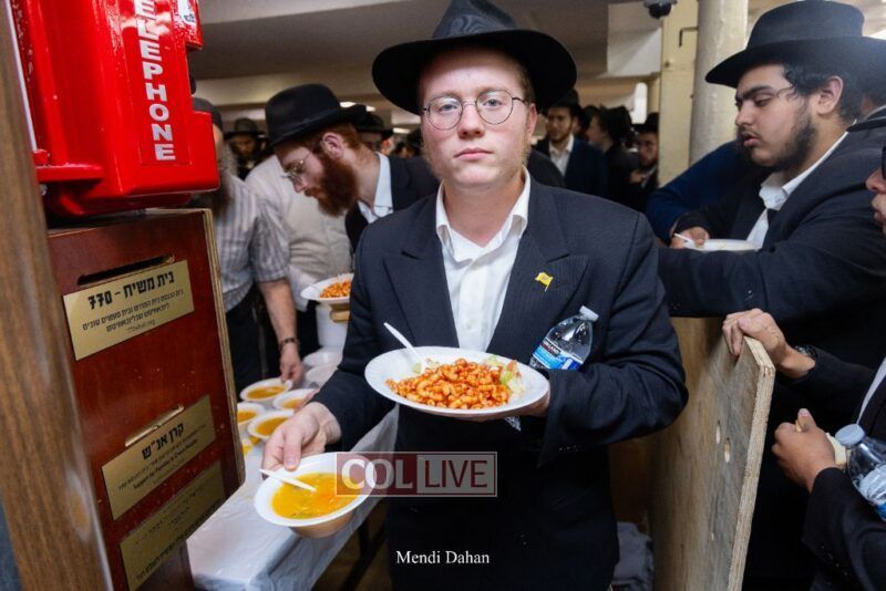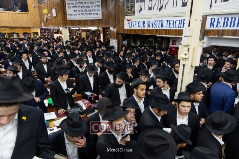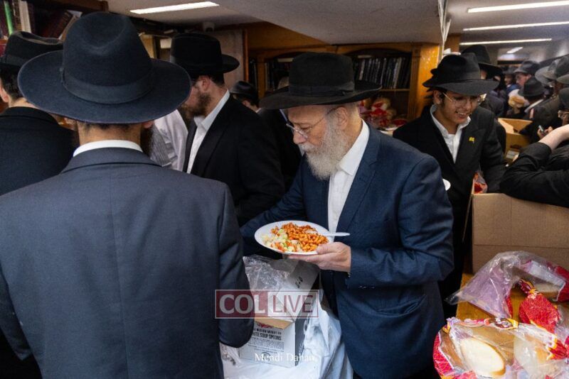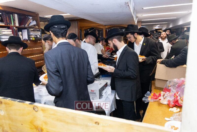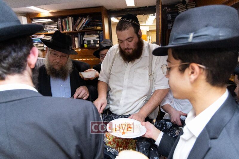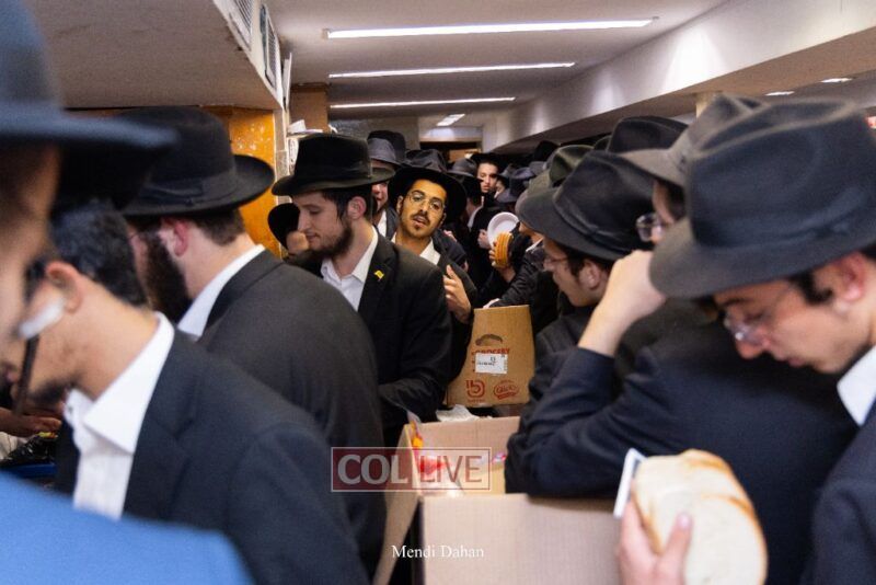 A large crowd davened Mincha and Maariv at the main shul of 770 Eastern Parkway as they concluded the Tzom Gedalia fast day, and then went outside to drink and eat. Photos