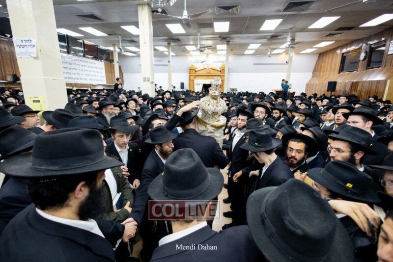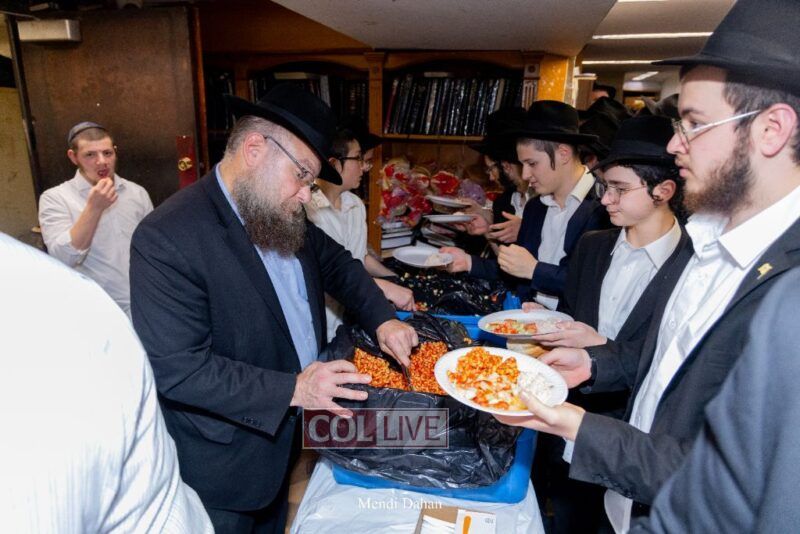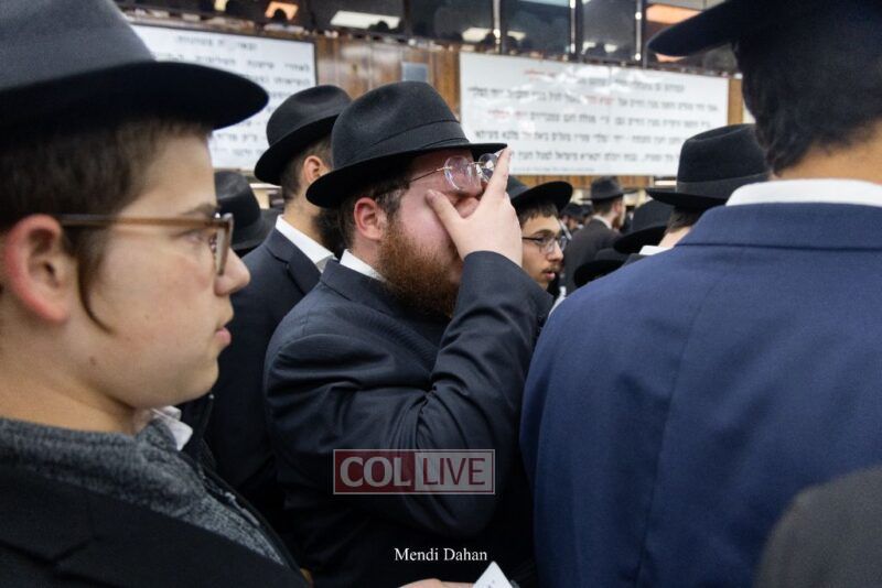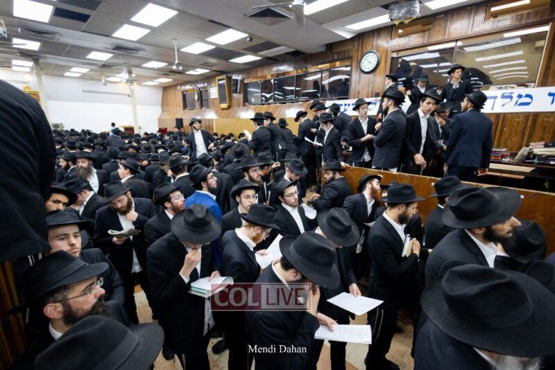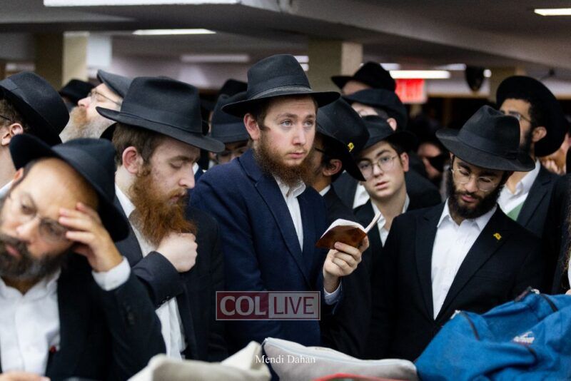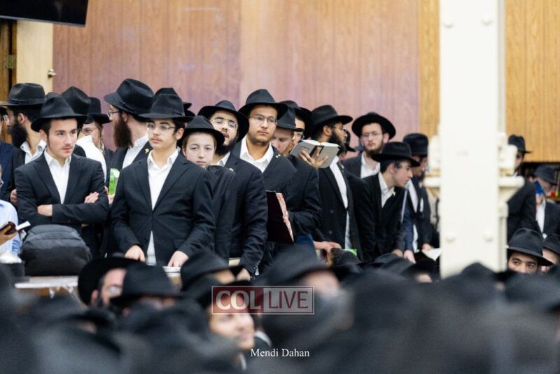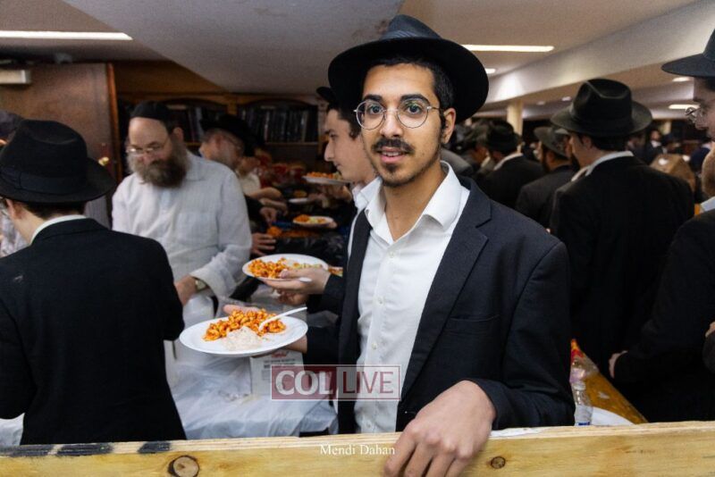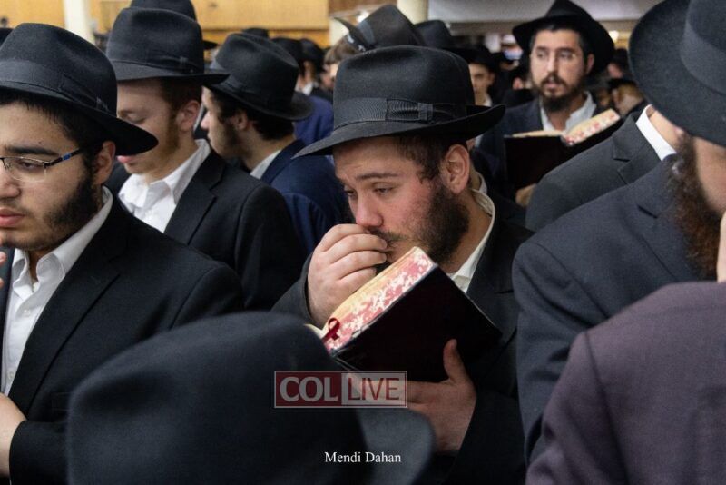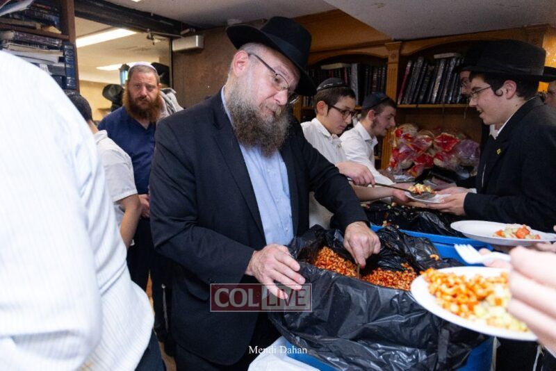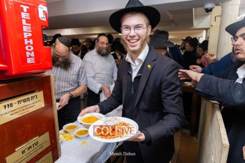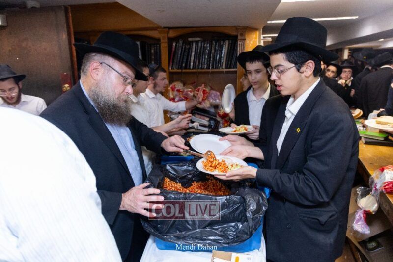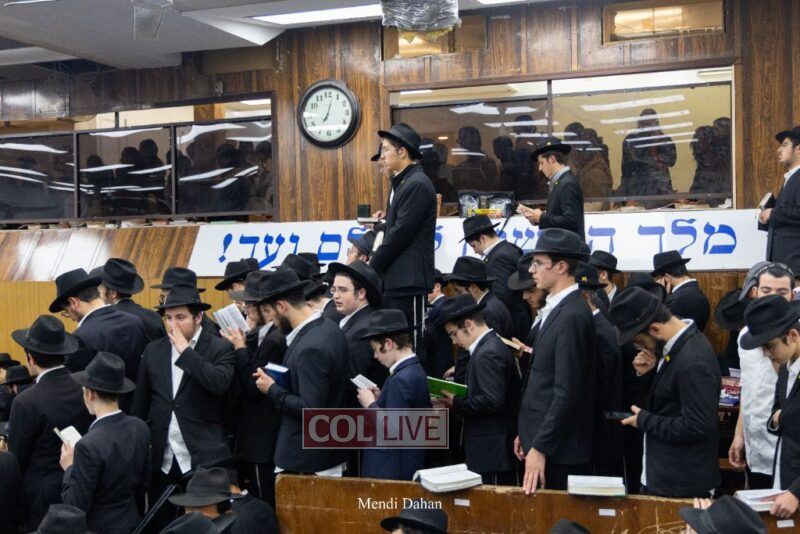 A large crowd davened Mincha and Maariv at the main shul of 770 Eastern Parkway as they concluded the Tzom Gedalia fast day, and then went outside to drink and eat. Photos