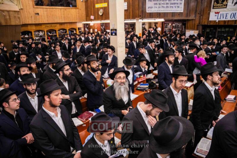 A large crowd of Crown Heights residents and guests gathered for Mincha prayers at the Main Shul of 770 Eastern Parkway on Monday, Tzom Gedalya. Photos, Video