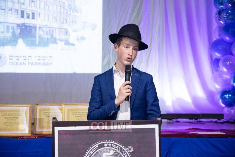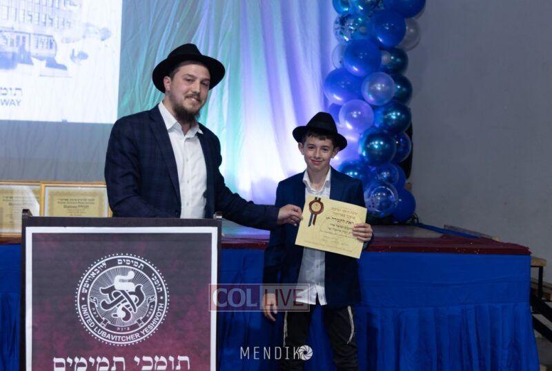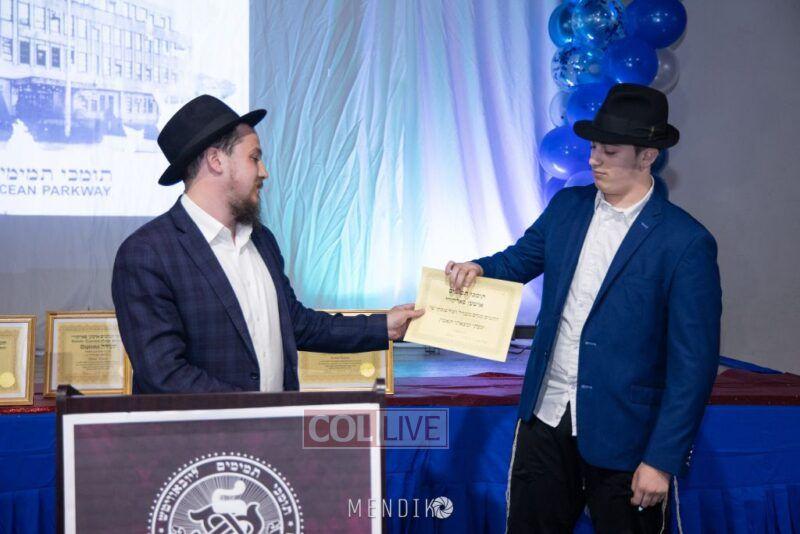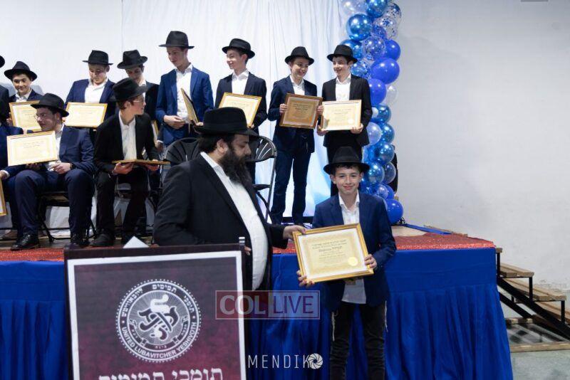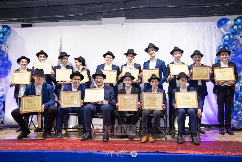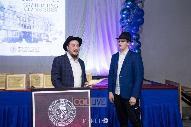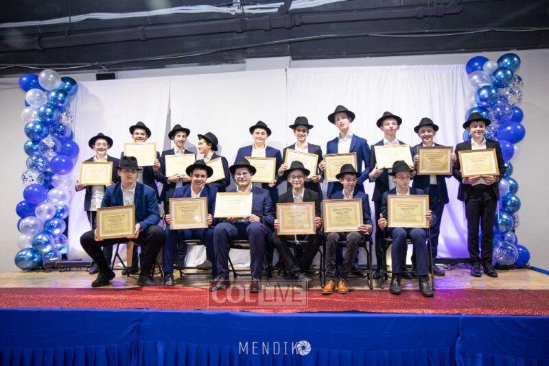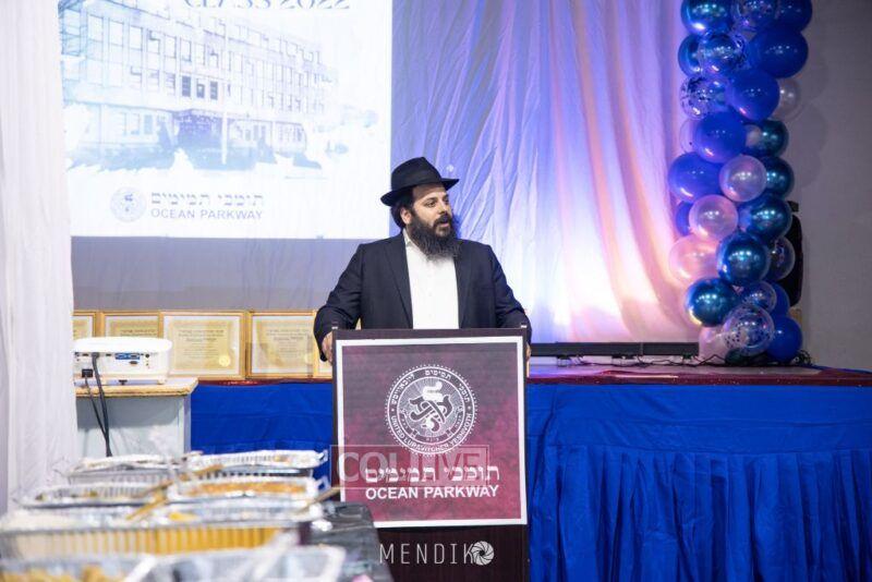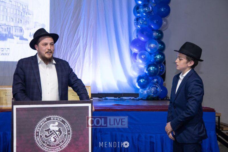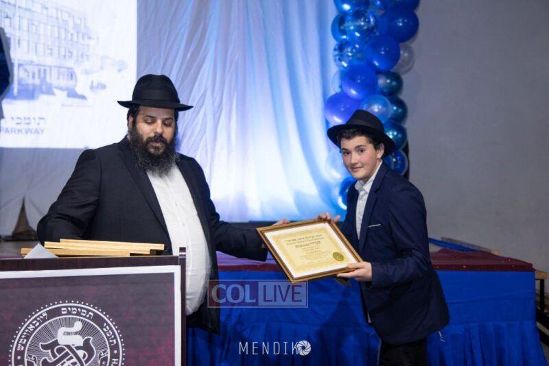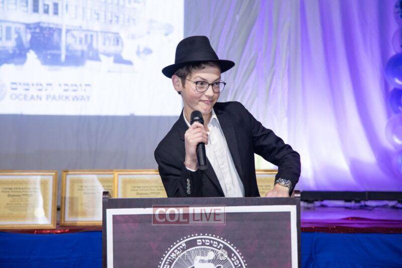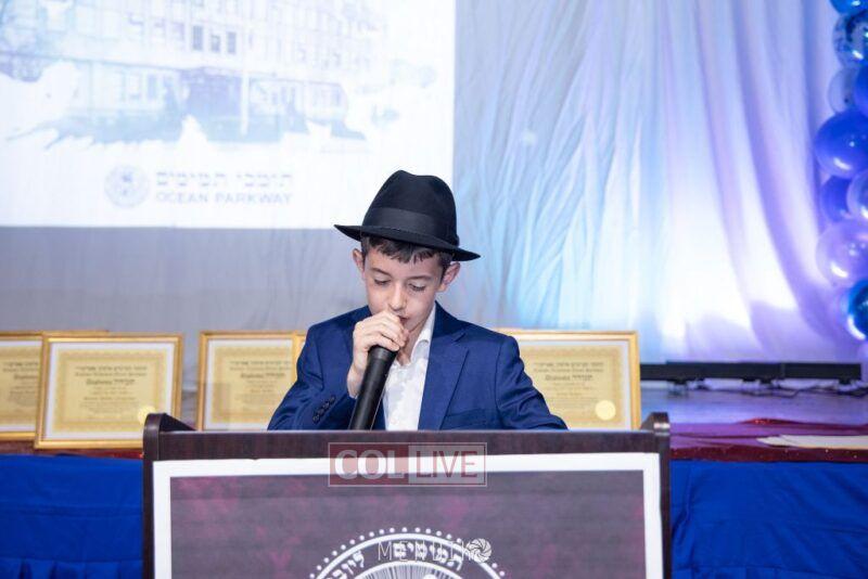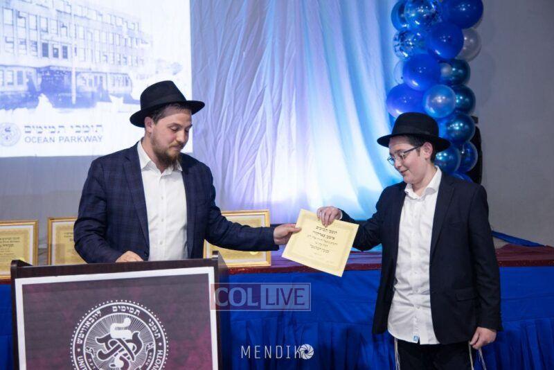 Families of students at Tomchei Temimim of Ocean Parkway gathered Sunday evening for a sit-down dinner and a grand award ceremony celebrating the graduation of the eighth grade talmidim.