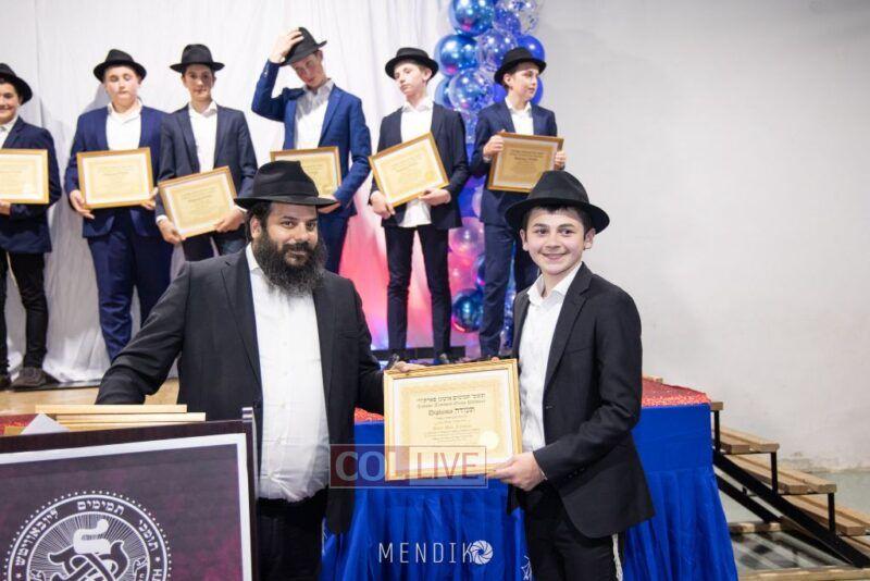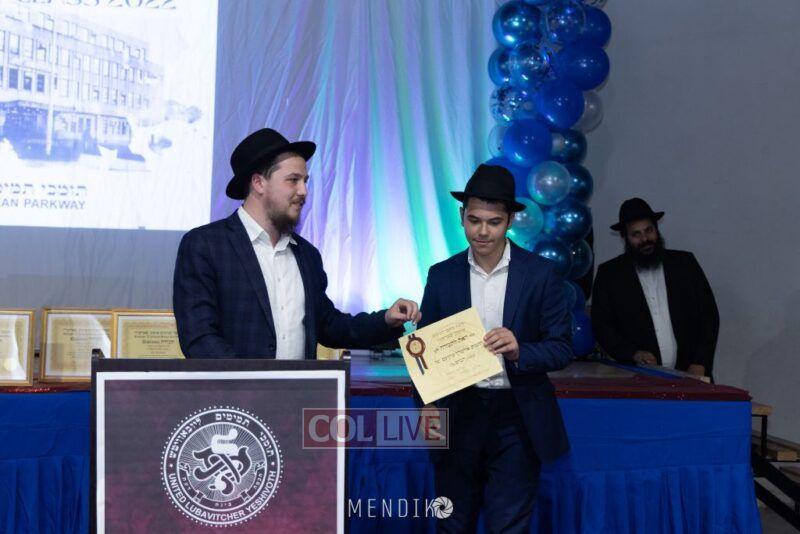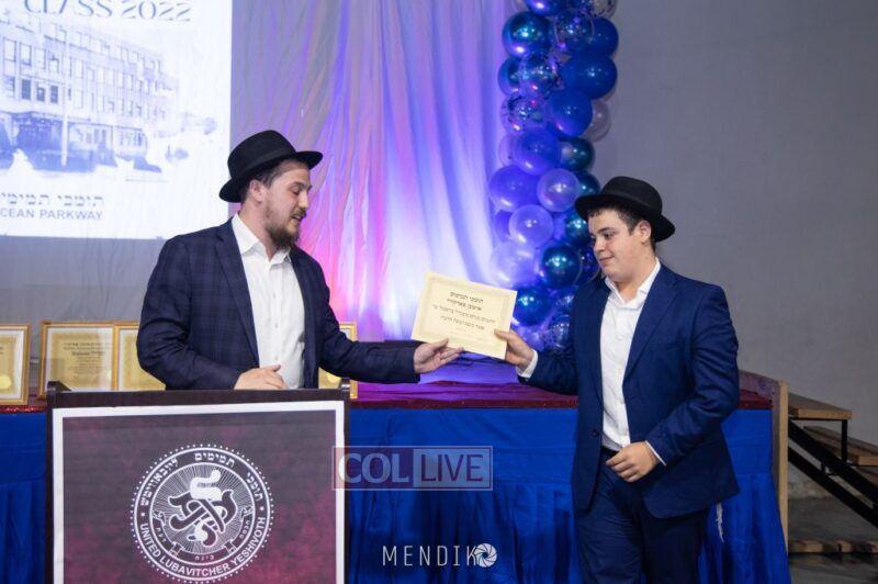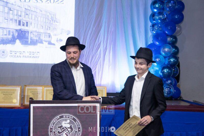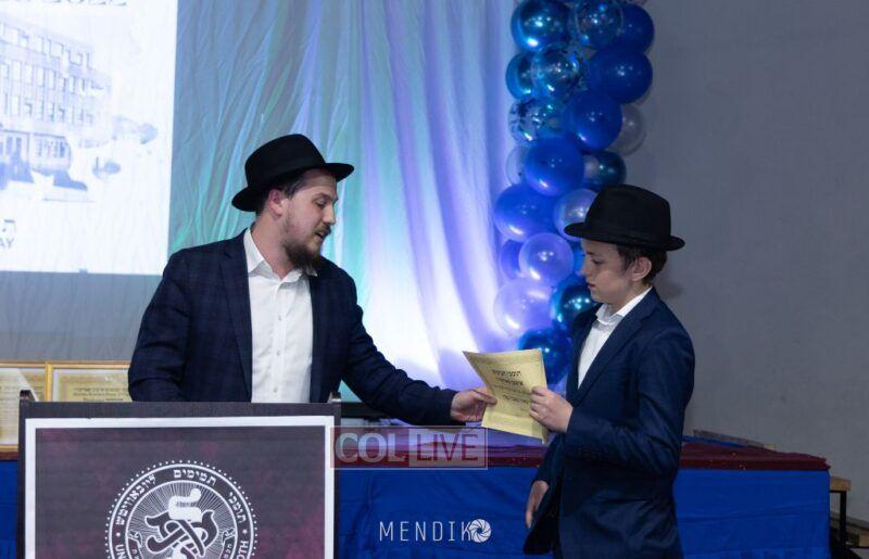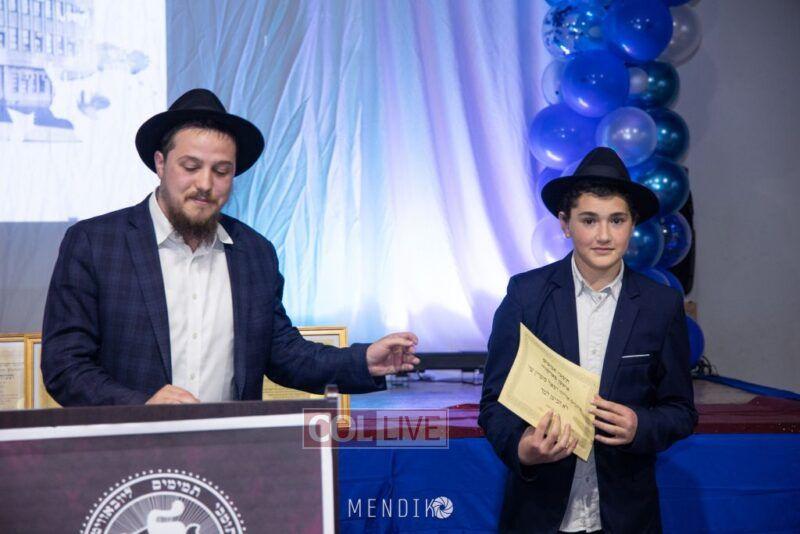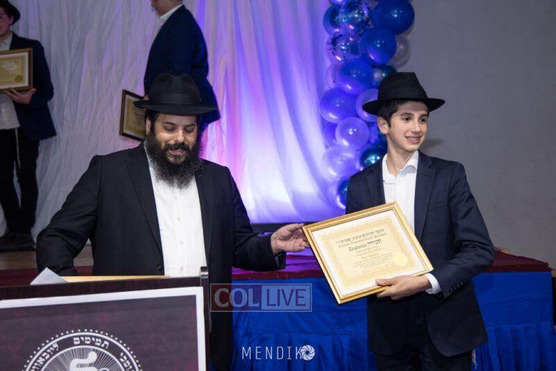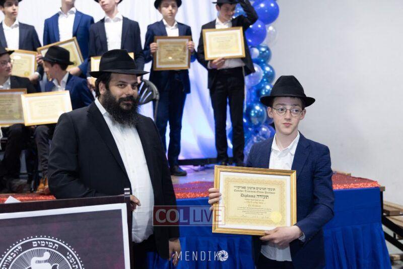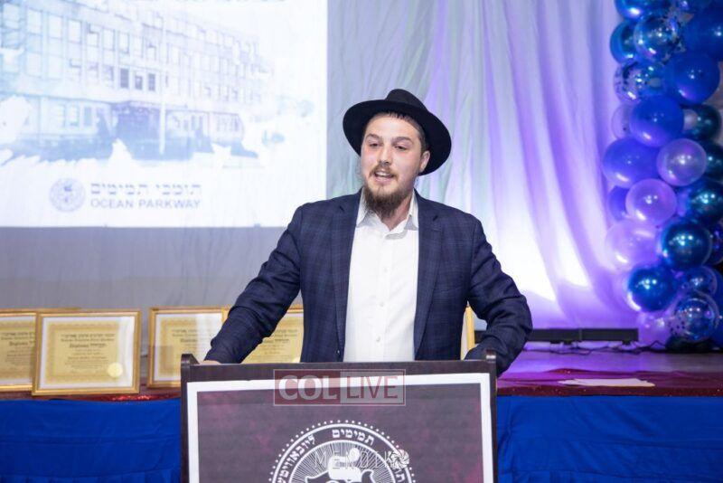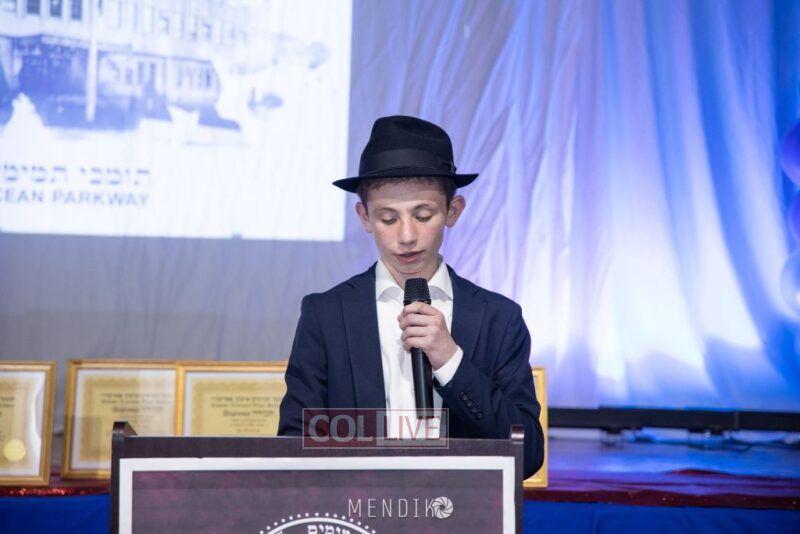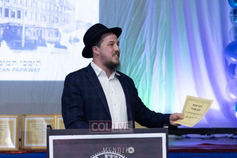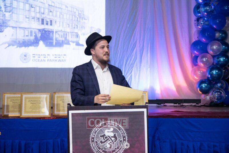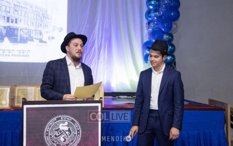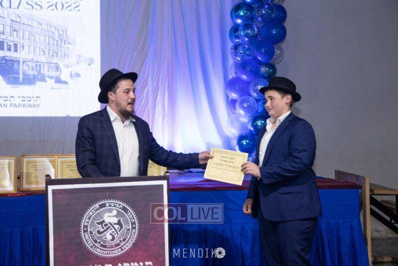 Families of students at Tomchei Temimim of Ocean Parkway gathered Sunday evening for a sit-down dinner and a grand award ceremony celebrating the graduation of the eighth grade talmidim.