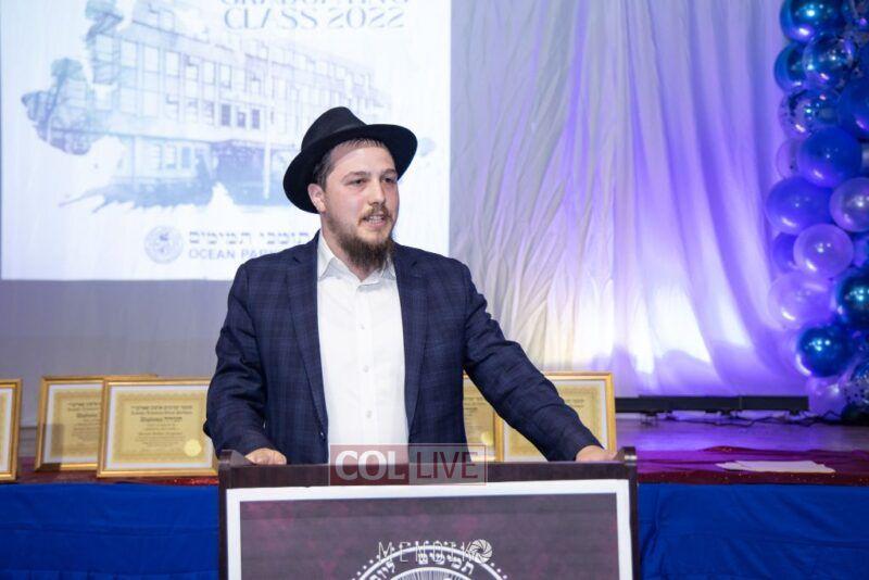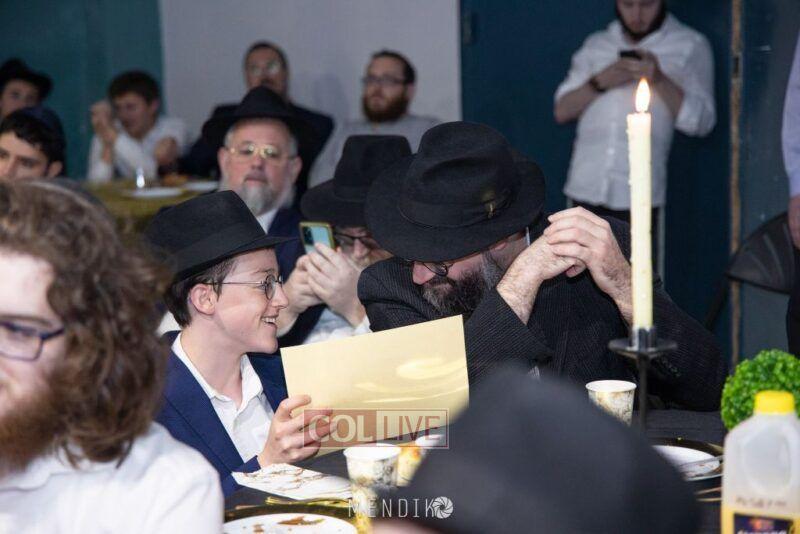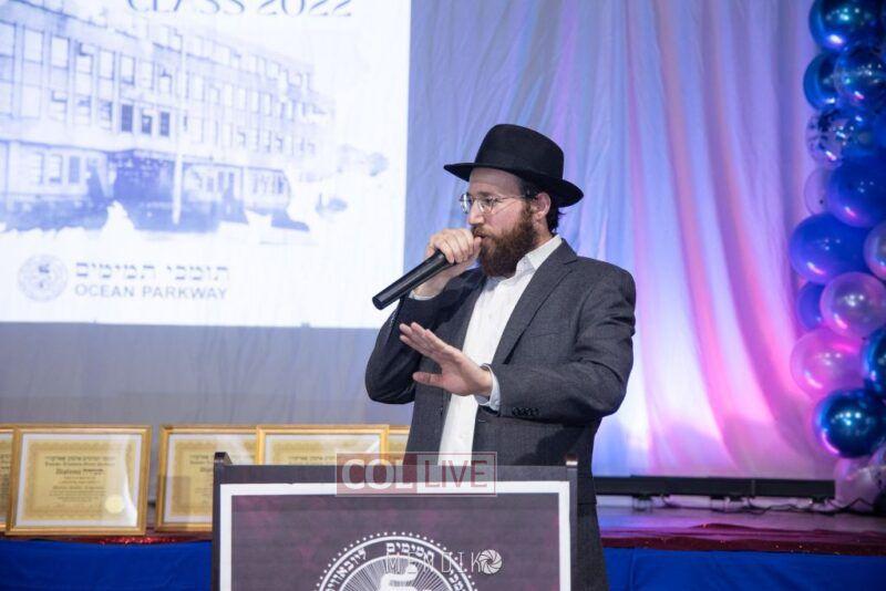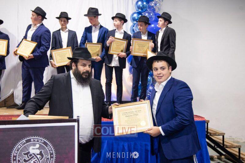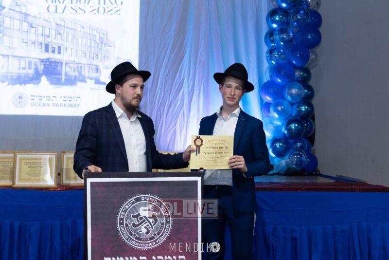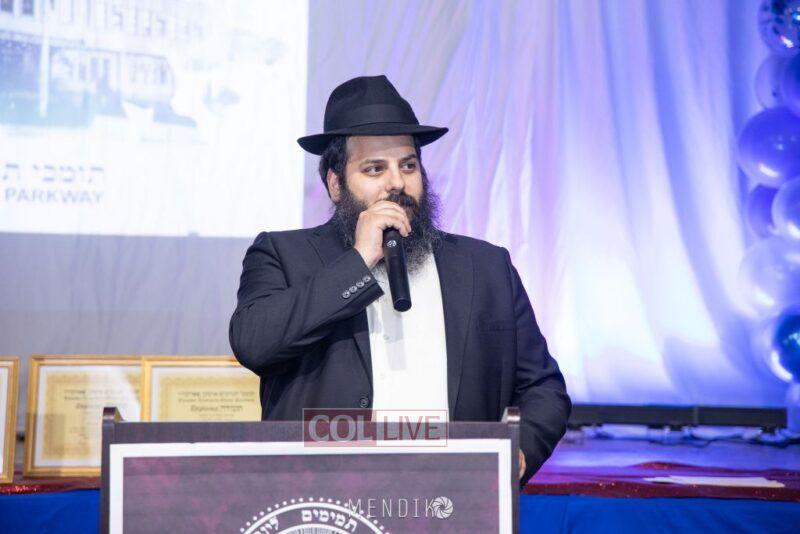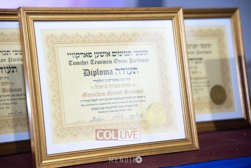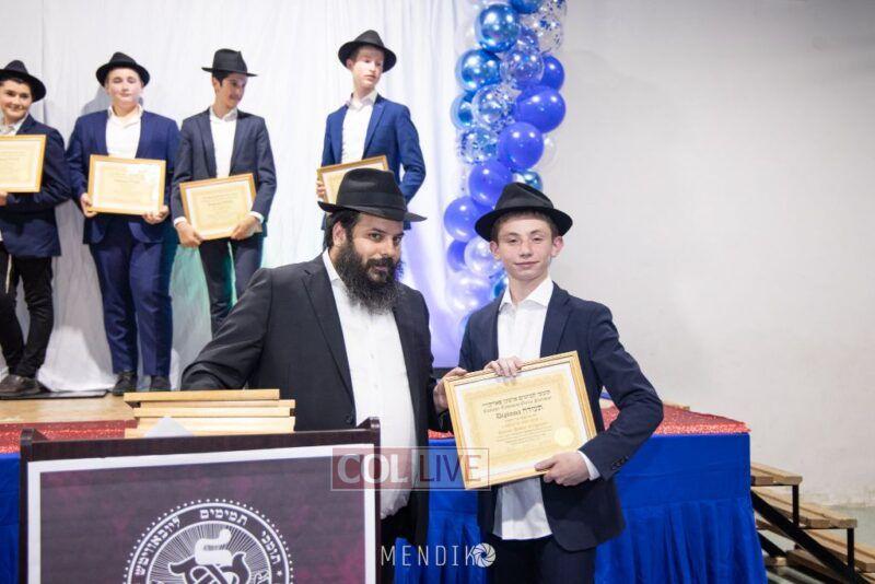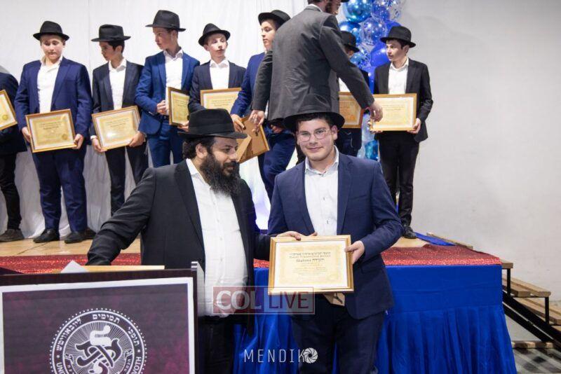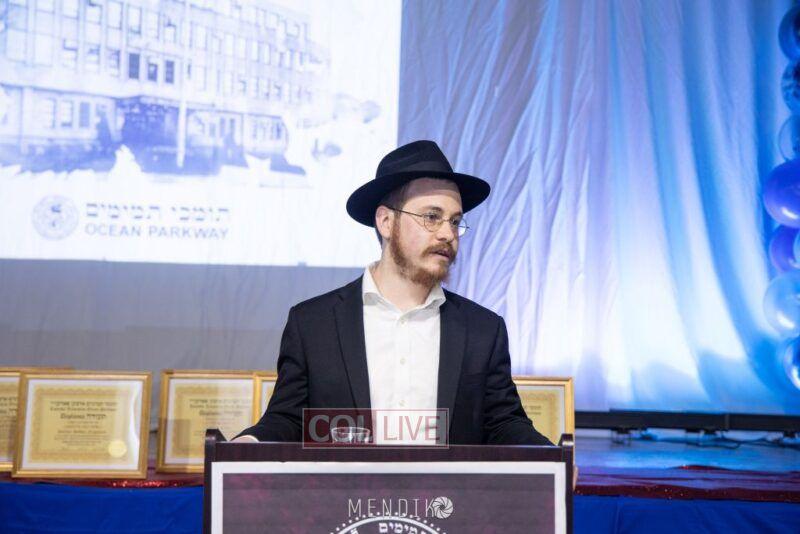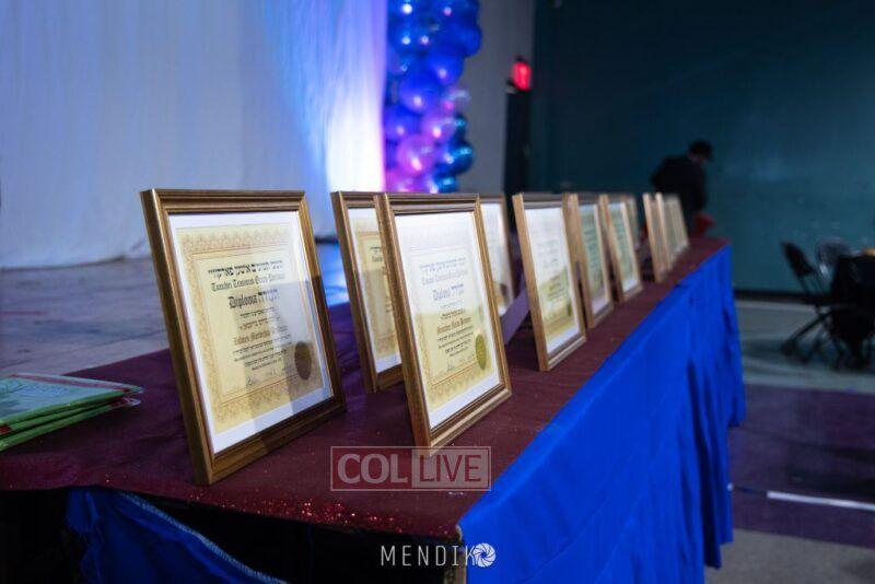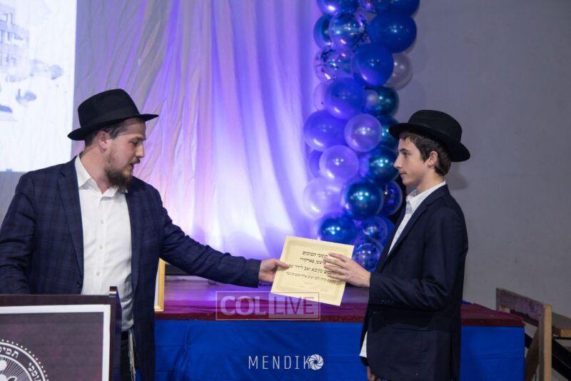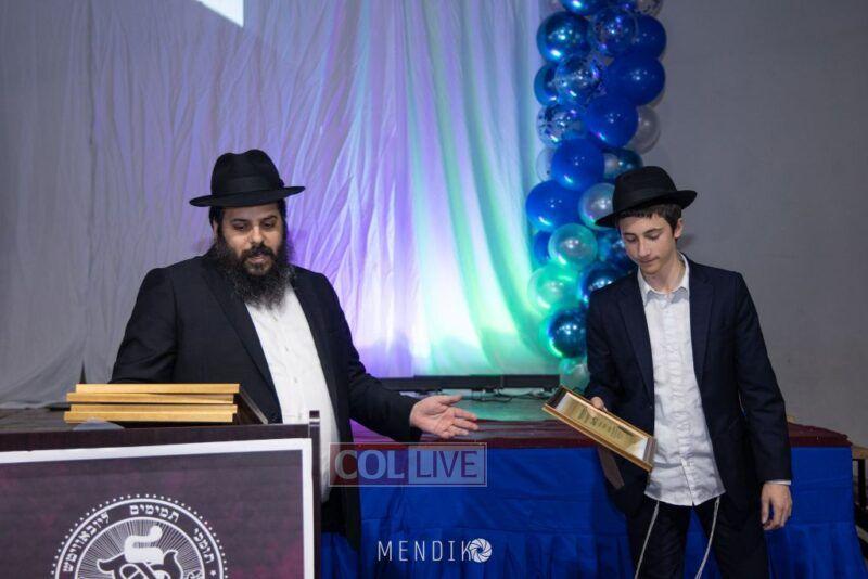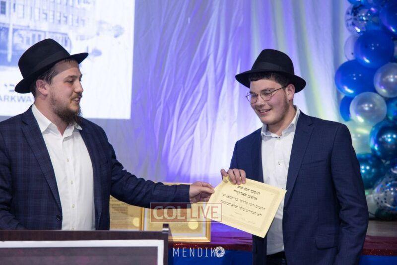 Families of students at Tomchei Temimim of Ocean Parkway gathered Sunday evening for a sit-down dinner and a grand award ceremony celebrating the graduation of the eighth grade talmidim.