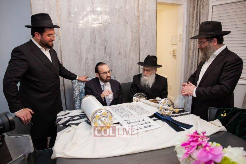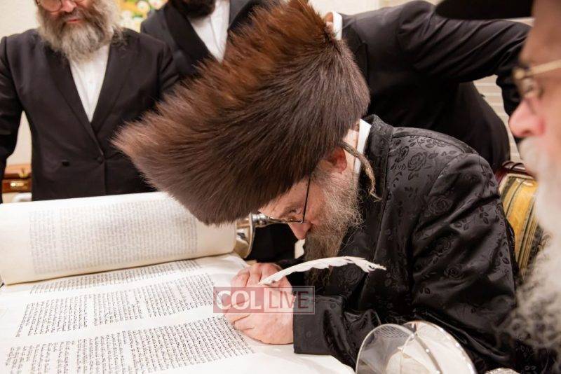 Each of the Rabbis inscribed a letter in the Torah together with Sofer Rabbi Moshe Klein and gave a bracha for the efforts of the organizers of the Torah.
