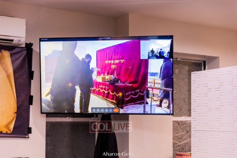 Mrs Chaya Zaets and four of her children were actually in Toulal, Morocco, by the Kever of the Tzadik, and provided live stream from the Kever, allowing those present to daven to the Tzadik on line.