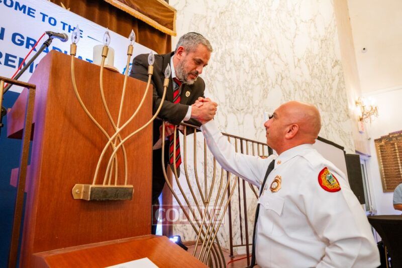 His sons, Chaplains Dovid and Shaya Weberman, together with Officer Jorge Ghitis from the Miami-Dade Police Department, and Eran Hazan and Joe Zevulomi from Yedidim, a volunteer-based organization, received the USCC Chaplain Honorary Award for their unwavering help to the Miami community during the Surfside disaster.