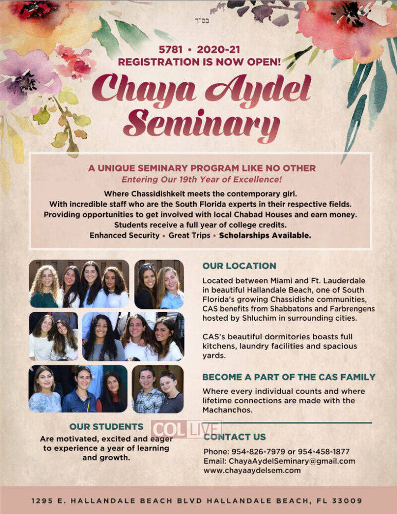 Please know that the Chaya Aydel Seminary is still in the process of putting together a strong class for this year, and is determined that our very own, good and motivated girls from the United states, have a choice of a local U.S. option that is just as good if not better than any of the Seminaries abroad.