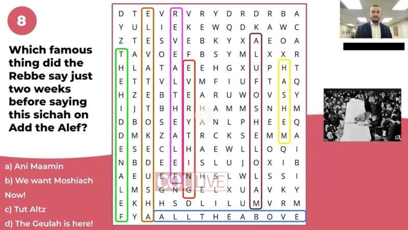 The event is part of a monthly Hakhel program that Tut Altz Kids launched at the beginning of the school year to inspire children in their unique role of bringing Moshiach. Based on the Live with Geulah Now! curriculum, each event reviews a segment and is released as a recording to be watched in the classroom or at home. The “Hide and Seek” event reviews the latest segment learned: Add the Aleph.
