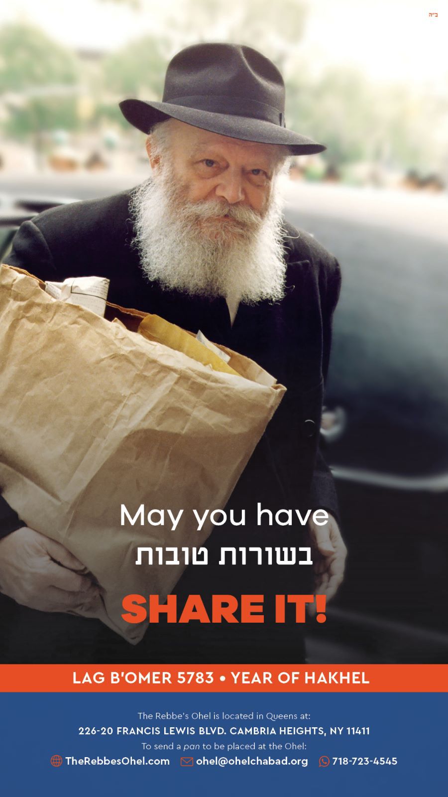 Take advantage of this special day and visit the Rebbe’s Ohel. If you are unable to visit in person, you may also send your pan to be placed at the Ohel via TheRebbesOhel.com, email [email protected], or call/WhatsApp 718-723-4545.