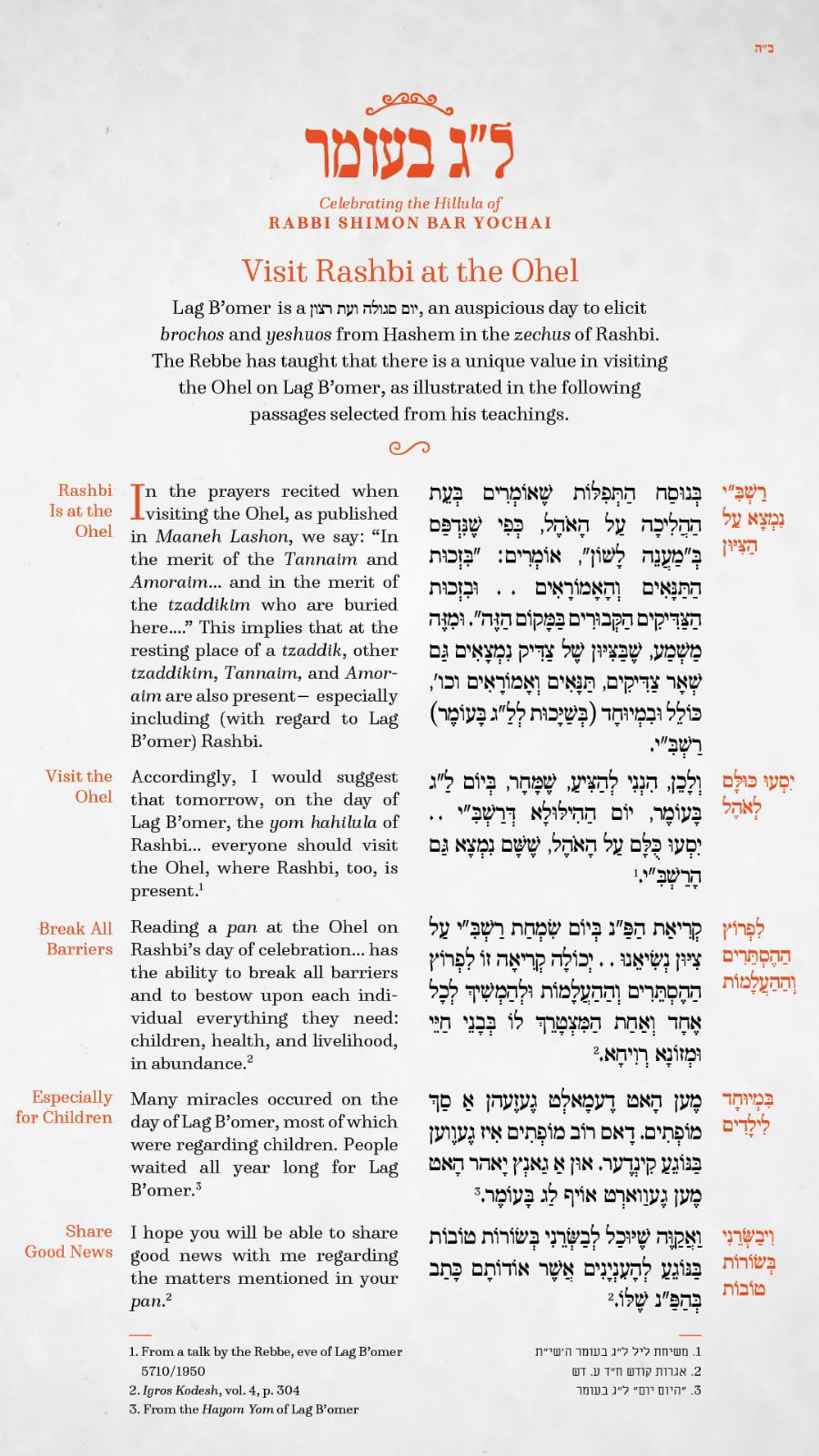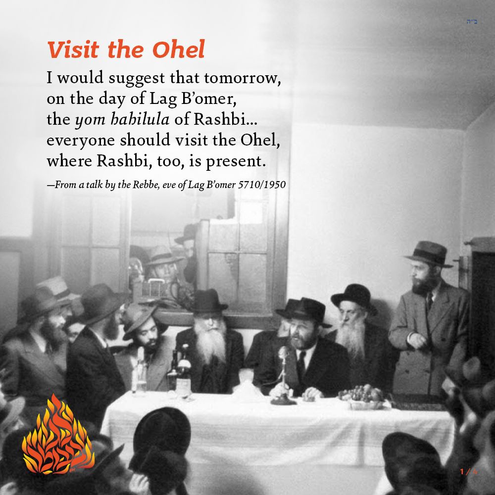 The Rebbe has taught that there is a unique value in visiting the Ohel on Lag B’omer, as illustrated in the following passages selected from his teachings – see images below.