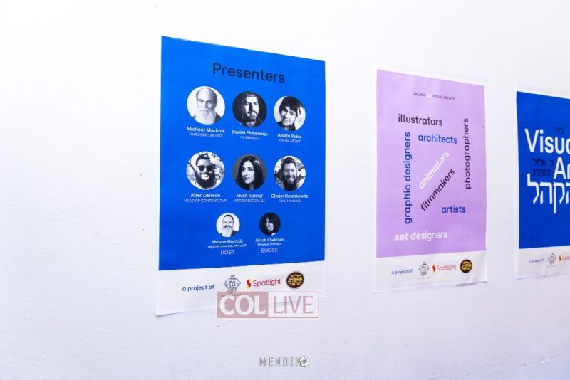 They included renowned artist Michoel Muchnik, filmmaker Daniel Finkelman, illustrator and animator Annita Soble, Alter Deitsch of TVR, Mush Kanner, Art Director at the Rohr Jewish Learning Institute (JLI), and Chaim Hershkowitz of Jewish video streaming app Tovedoo. Emcee was Moishe Muchnik.
