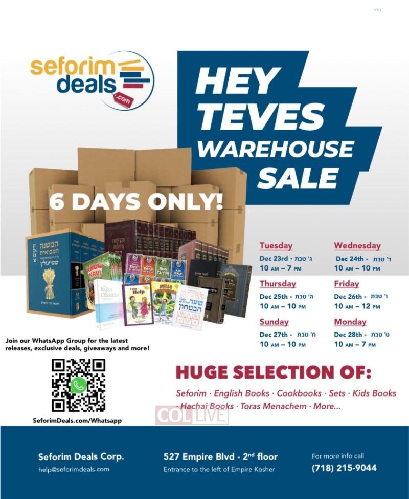 Shoppers looking to stay informed beyond the sale are encouraged to join the SeforimDeals.com WhatsApp group. The group provides updates on flash deals, new releases, limited-quantity specials, and seasonal promotions throughout the year — making it a popular resource for regular book buyers who don’t want to miss opportunities.