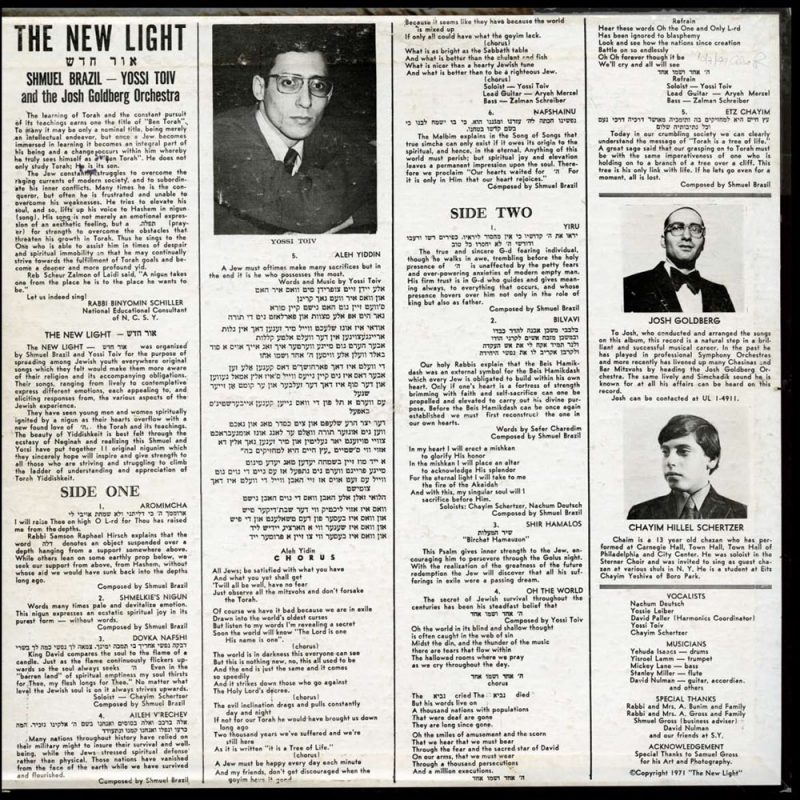 How far did we go back? 1971, that is years before albums like Regesh. Now, we all know that R’ Shmuel Brazil was the force behind Regesh, and many other things to come. Did you know though that Shmuel Brazil started even earlier? Yes, in 1971 he composed 8 of the 10 songs on a groundbreaking new album, “Ohr Chodosh”.