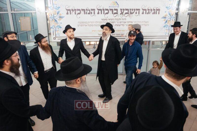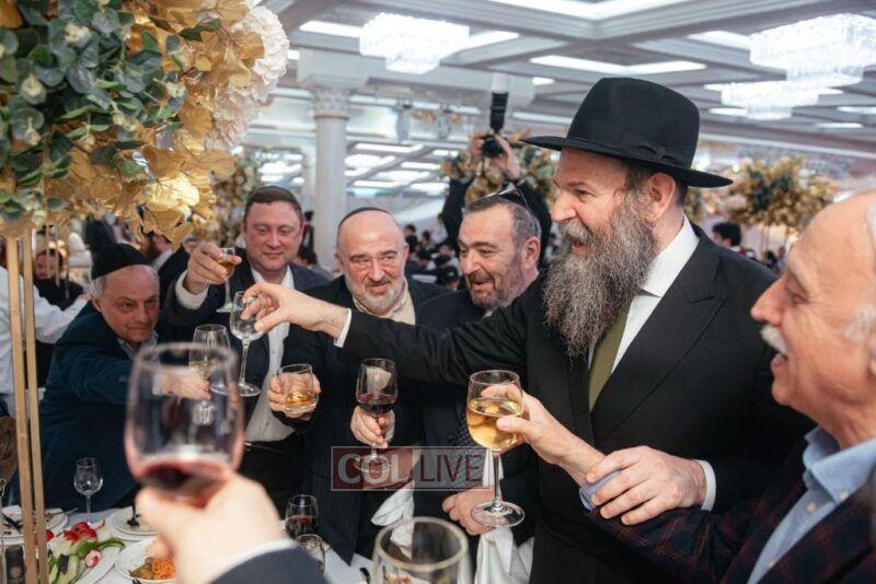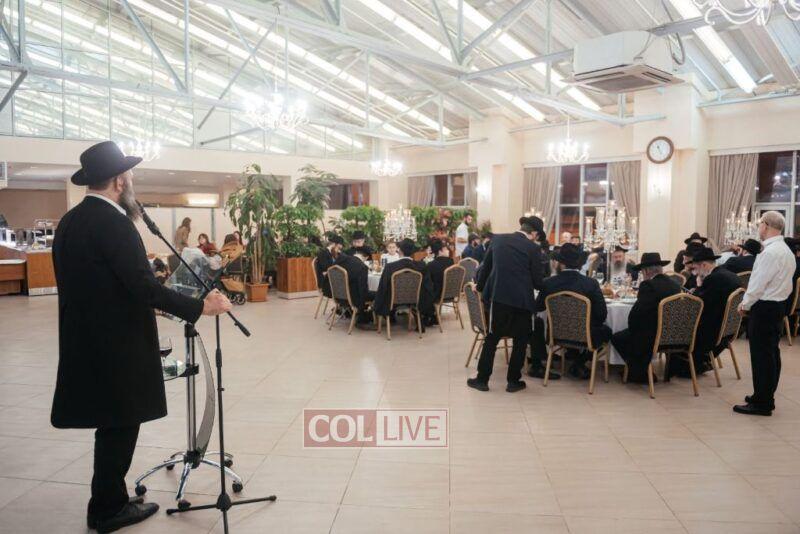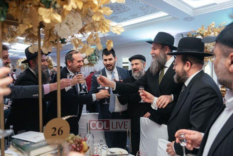 In appreciation to the two esteemed families, a sheva brachos was hosted by the Shaarei Tzedek Chesed Center in the Marina Roscha neighborhood, with many friends and supporters who assist the needy and indigent all year through the center’s many aid projects, in attendance.