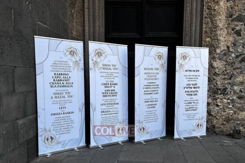 The wedding took place in Italy in honor of the chosson’s grandfather, longtime shliach Rabbi Moshe Lazar, who served as the mesader kiddushin. The chuppa was held in the courtyard of the impressive castle near the Bracciano lake.