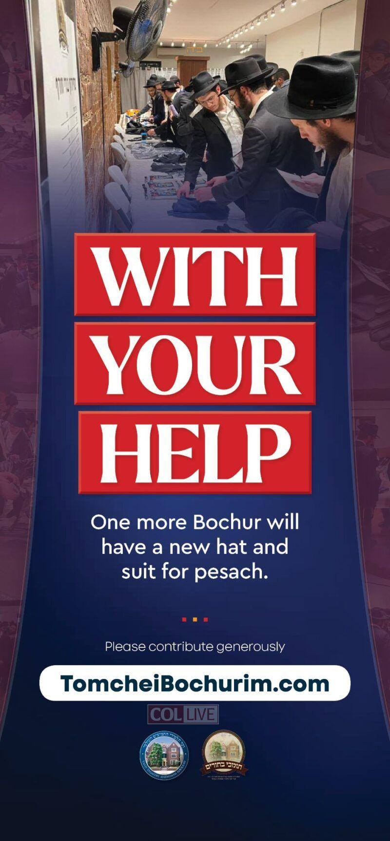 Over the next month, the Keren Tomchei Bochurim, a project of Vaad Talmidei Hatmimim, will be assisting hundreds of Bochurim with clothing for Yom Tov, including new suits and hats, sets of Tzitzis, shoes, glasses, and more.
